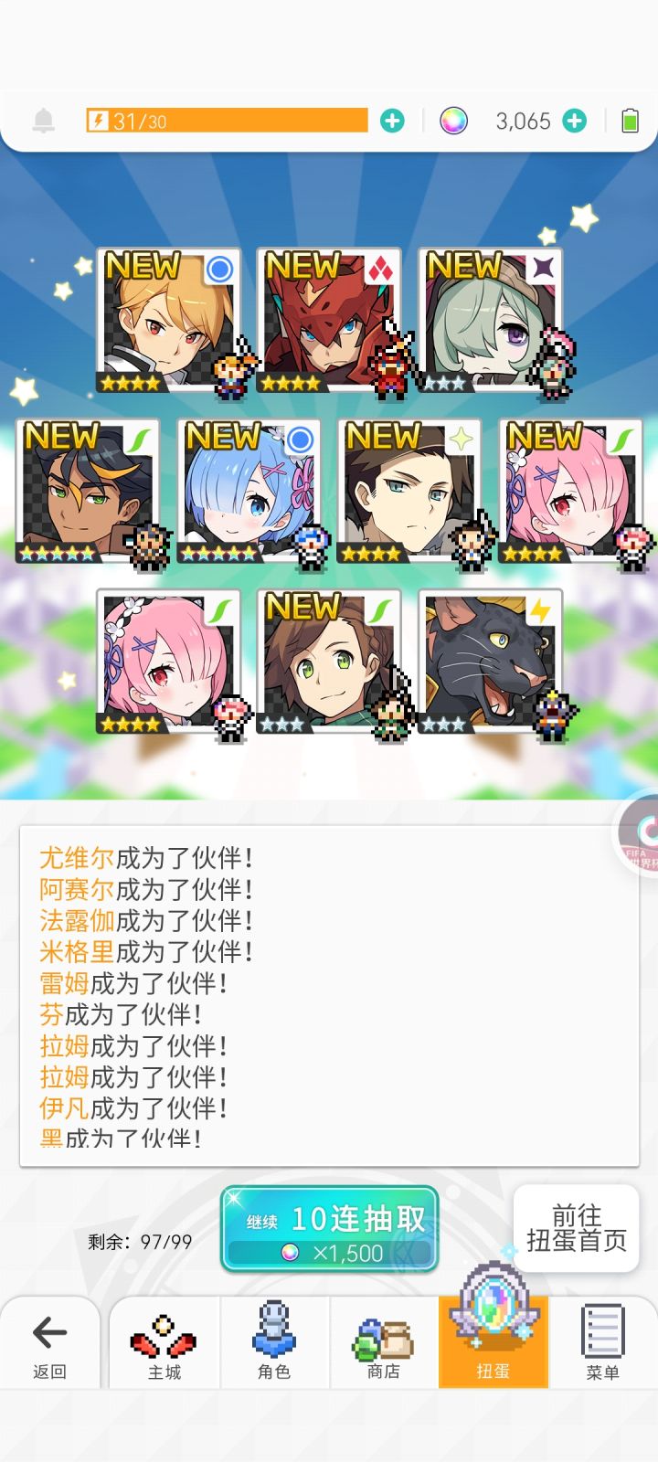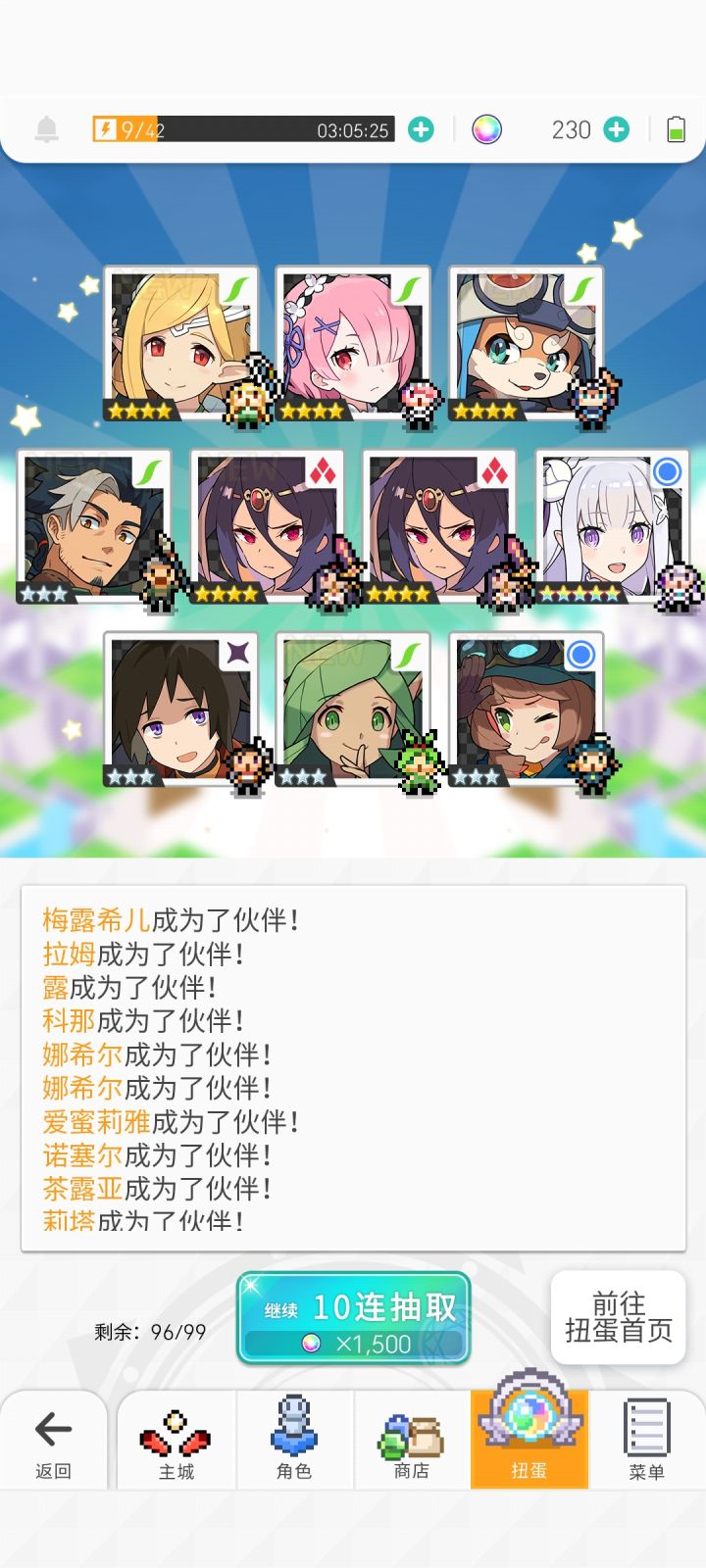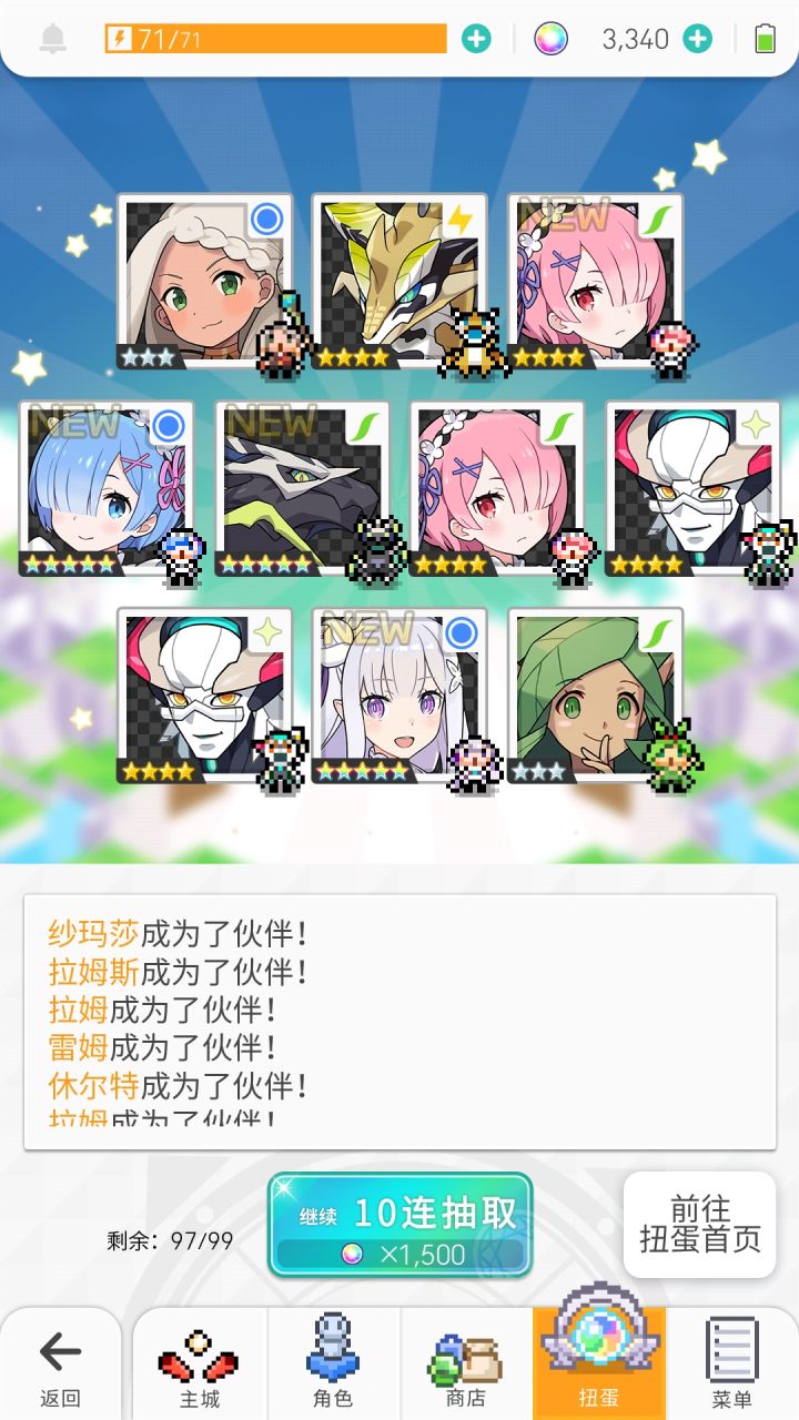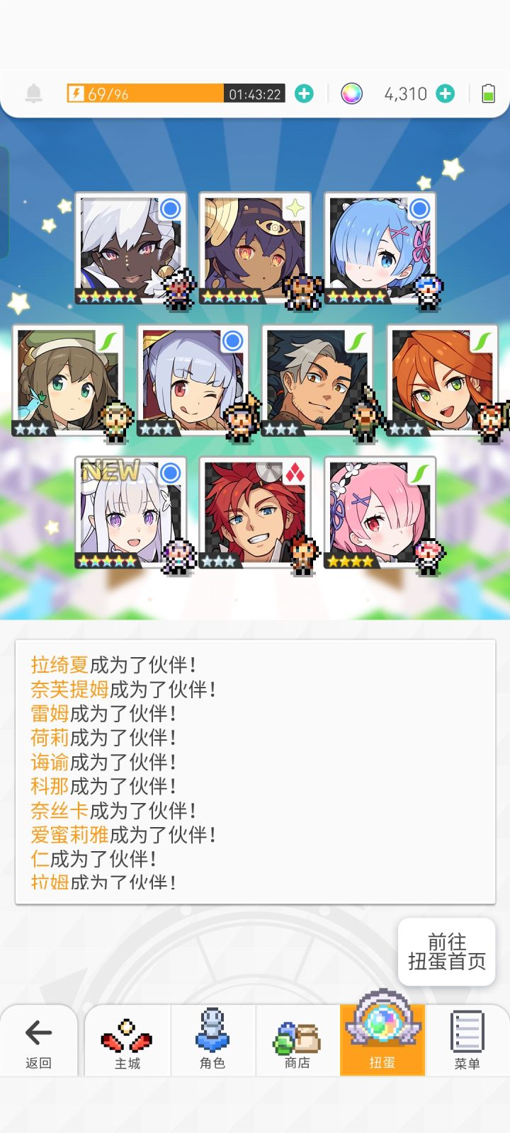 抽到蕾姆了。二版有用的都点了。人权都有。竞速盘子也都有。玩的晚,半周年之后入坑。不太想天天再挂机了。唉好游戏啊。有需要的嘛