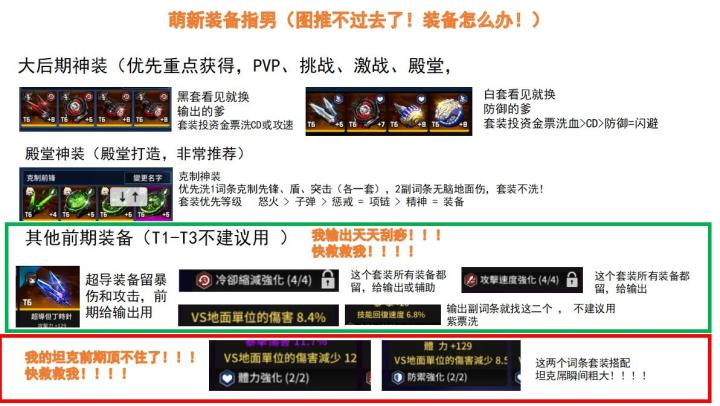 最近啊b上发视屏,好多人在说看不懂我装备,而且也没见过谁写关于高阶装备的介绍。如果有需要,后续会对防御,机械,士兵进行补全。(注:此攻略适合pve基本全通,希望进阶pvp前排的人,对萌新帮助较少)放一个悠悠球基础面板,方便毕较1.cd篇7244,简单讲一下吧,最基础的毕业装备(虽然基础,却是最强的),副词调统一cd。由于在t6下,有72cd,44对地伤害,所以通称7244。减伤cd,武器选