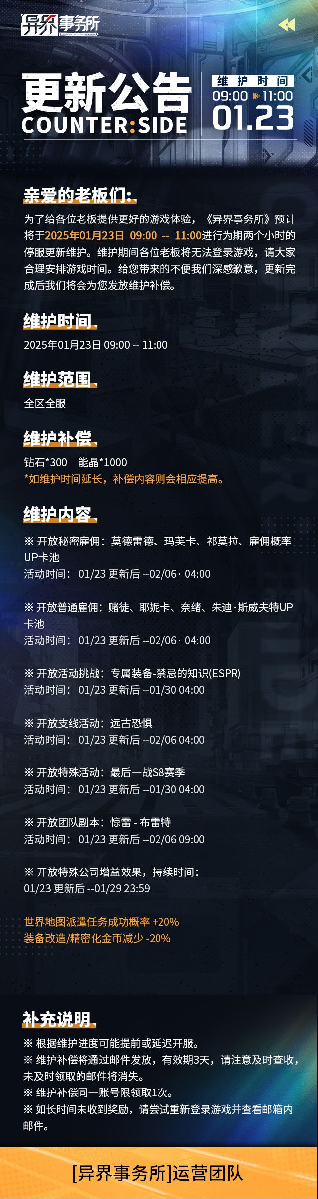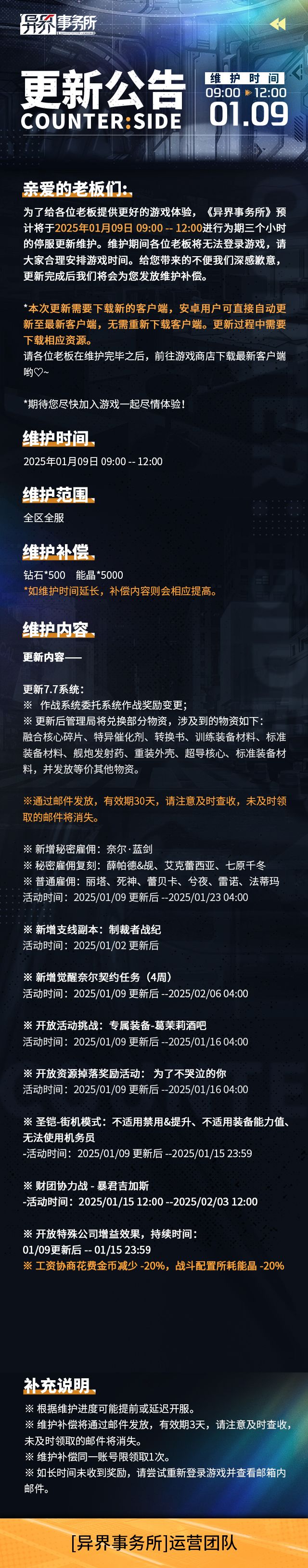 管理局情报 | 2025年1月《异界事务所》版本更新计划预览