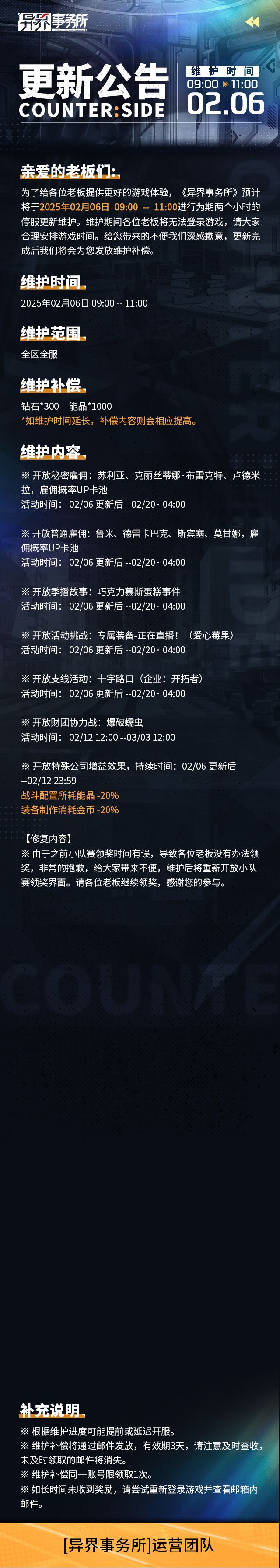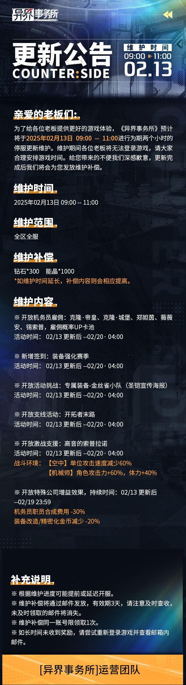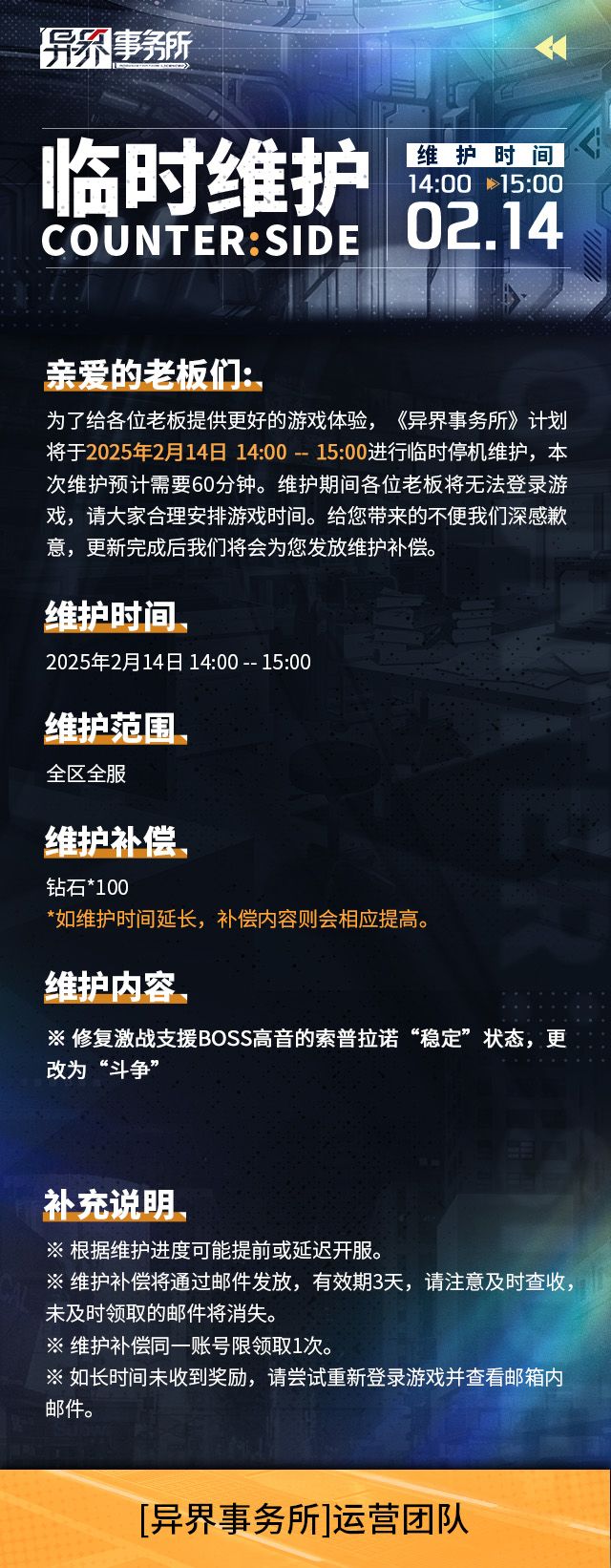 异界事务所 | 2月14日临时维护情报