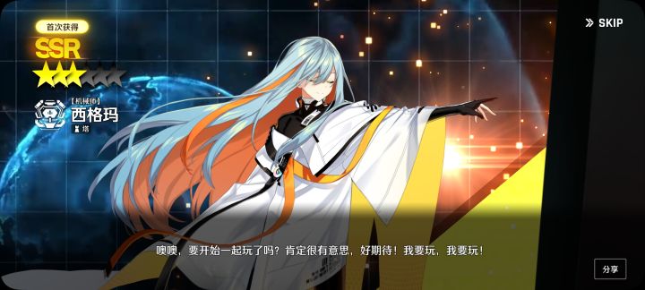 好家伙,第一发十连出了这个,刚刚才打完剧情,很喜欢女儿,没想到一下就出了