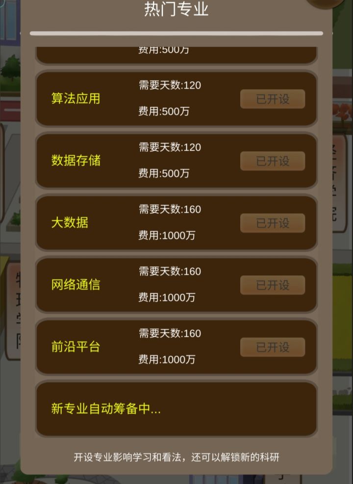2.开局直接买俩商业街摊位,商业街是你除学费外主要经济来源,后期在保证不破产的情况下有钱就买商业街