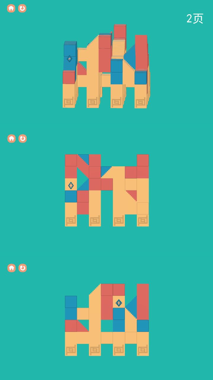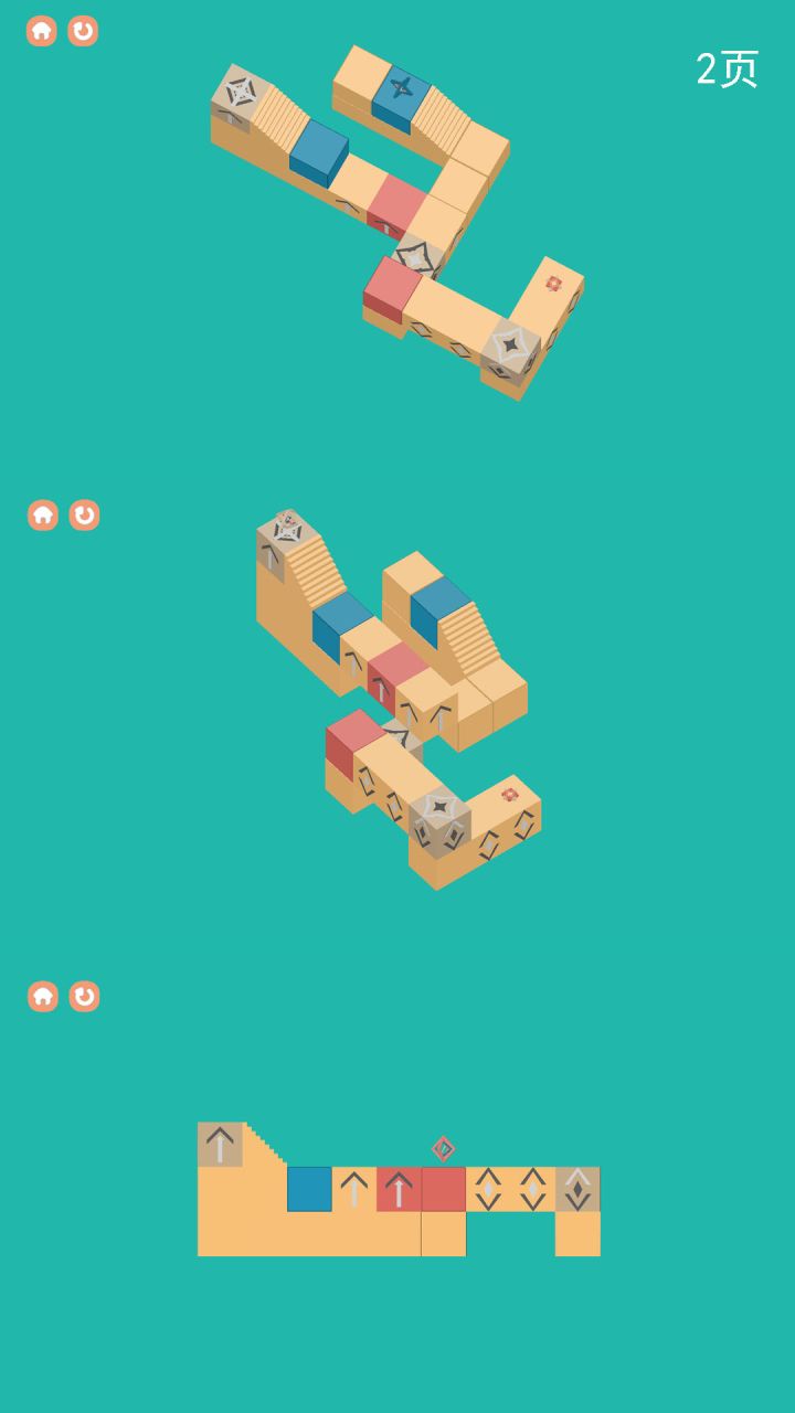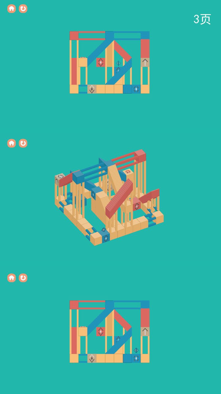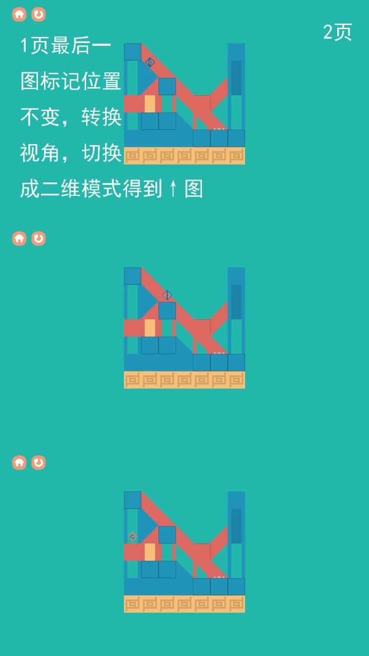 第17关的关键点和14其实是差不多的,有个地方是两个楼梯重叠的地方,当转二维的时候本来在后面的小方块会被判定到前方,就可以继续走了。和14关不同的是17关在上到第三层之后还需要下回第二层转换位置才能到达终点(最开始有个地方我一开始玩的时候可能是有bug,容易过不去,但是多次重启之后就可以通过了) 视频略长,大致有三分多钟,可以拖动到中间进行观看