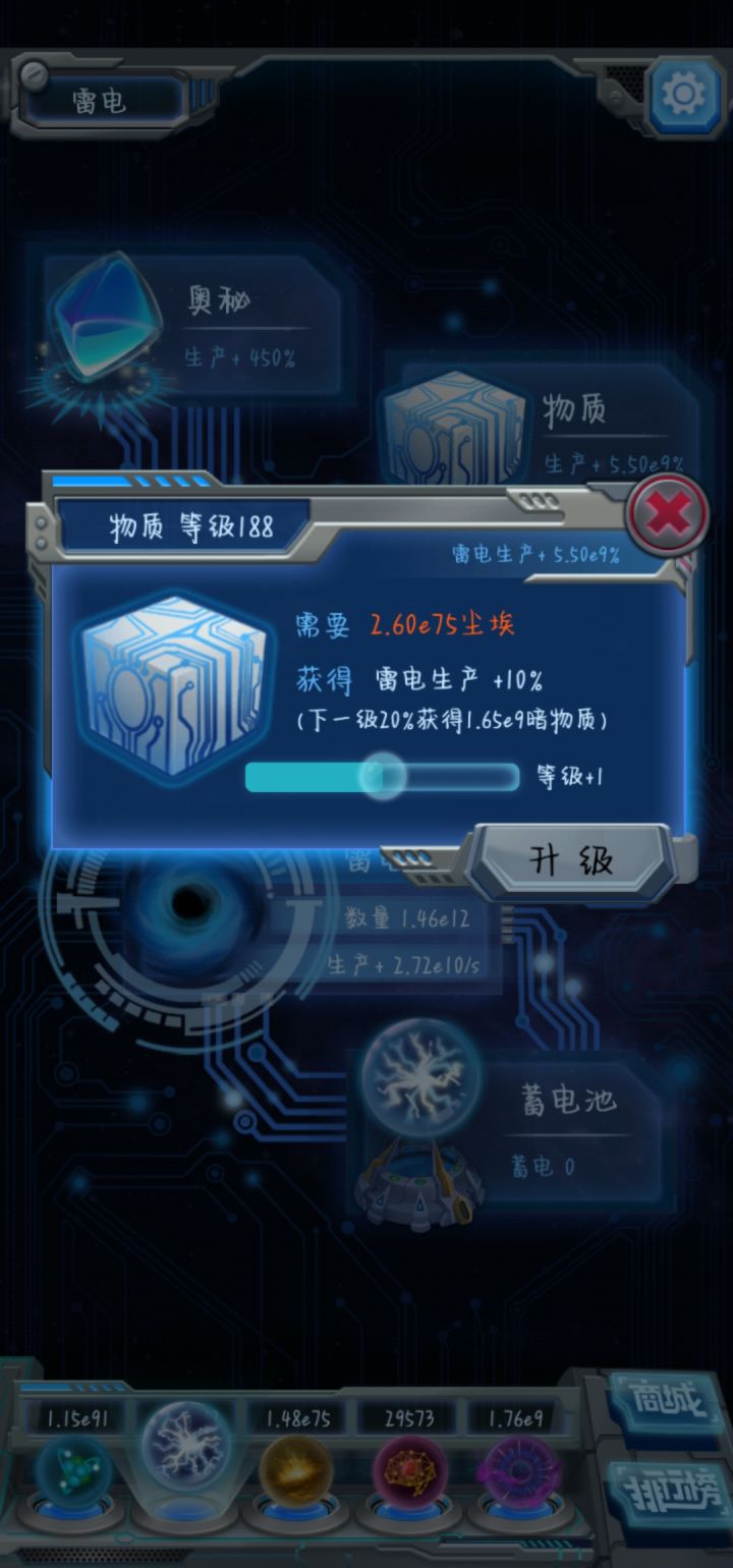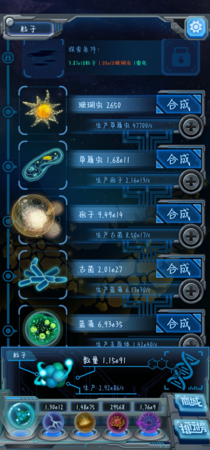 发一篇攻略帖,聊聊几点心得和几个疑问,希望能帮到比我新的萌新。如有不同意见欢迎指出,讨论。1.何时从主物种n大量合成n+1并升级其生产等级:合成后n+1物种的单位时间产量能达到单位时间用雷电合成n的量的1%~10%就可以全部合成n+1 ,但是在比例低时,不要升级最高的一级生产等级。具体时机最好放在n物种增长数值放缓并且向下传递乏力时,但此时主物种还是n,仍然在n物种的复制期。雷电继续用于合成n