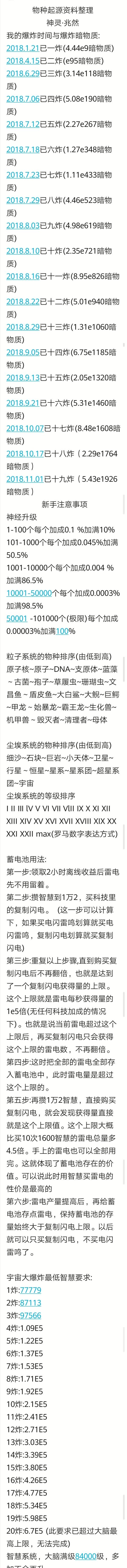 看论坛没找到比较简单的比较方法啊,我就自己算了一个简单粗略的比较方法,首先我们知道闪电是限制粒子系统发展的核心资源,因为没有足够闪电我们才不能把所有物种转化成高级物种获得更高收益,复制闪电的上限是1e5的秒产,复制闪电消耗的智慧可以扭24次,扭曲可以产24*15*60的电,复制闪电产电大约为扭4.6倍,同时扭曲也有生物收益,我们用闪电合成的目标生物的产量如果是雷电产量的3.6倍那么用时空扭曲就是赚