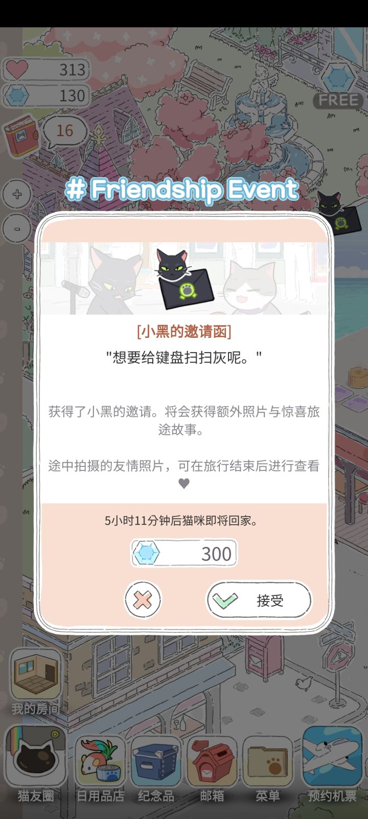 我觉得可以多加几种猫叫声,特别是目前的几只猫咪如果能做到拥有不同的叫声,我觉得体验会更好。另外就是主页的小村背景(指场景图)可以做成能够更换的,场景图更换后机票的价格也会随之出现改变。以上🌸