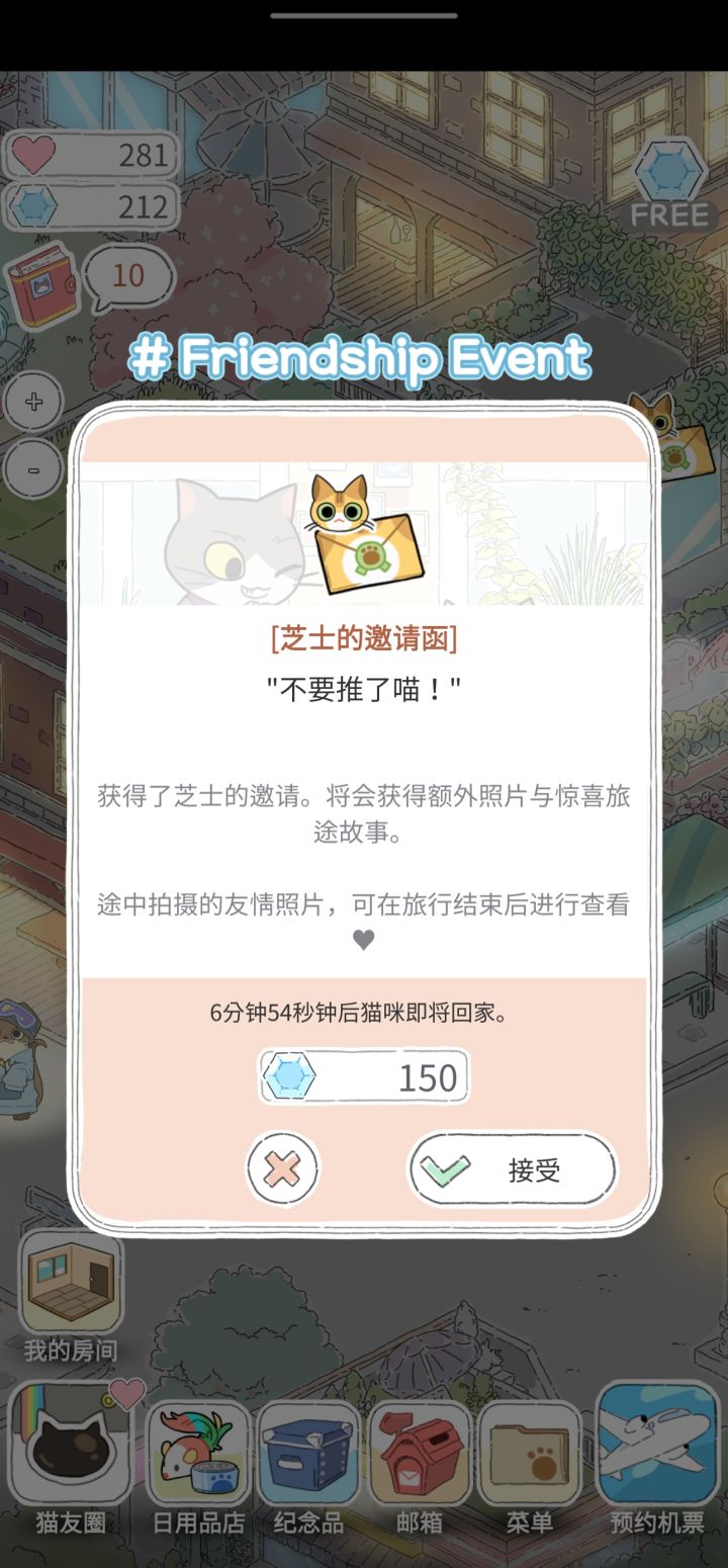 这个邀请函怎么这么贵啊喂 我退了三张了已经很有愧疚感 太耗钻石啦!!!如果没有看广告成分的话钻石根本不够用...虽然我知道这是旅行青蛙一样需要时间积累的游戏,但是成就给的钻石也很少啊x