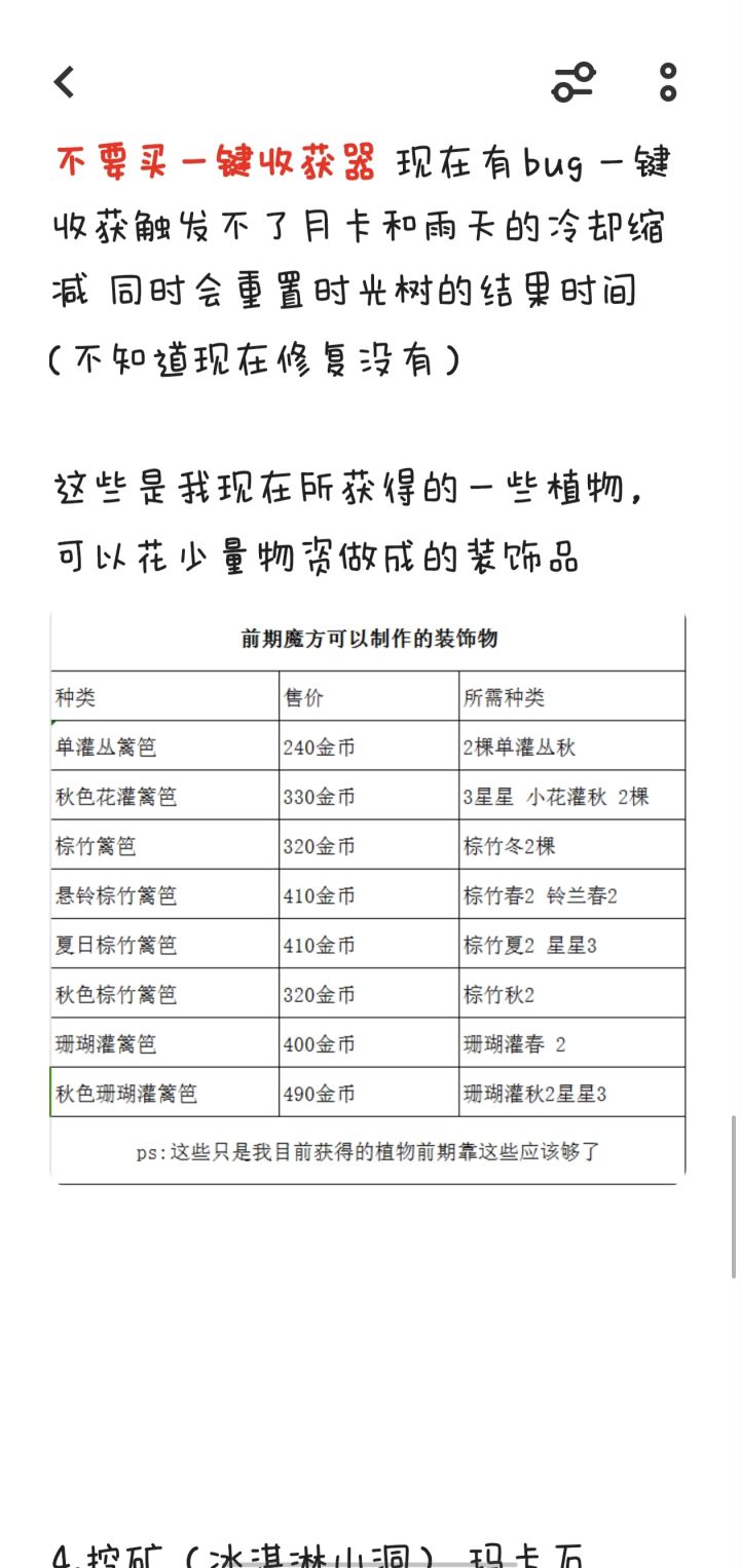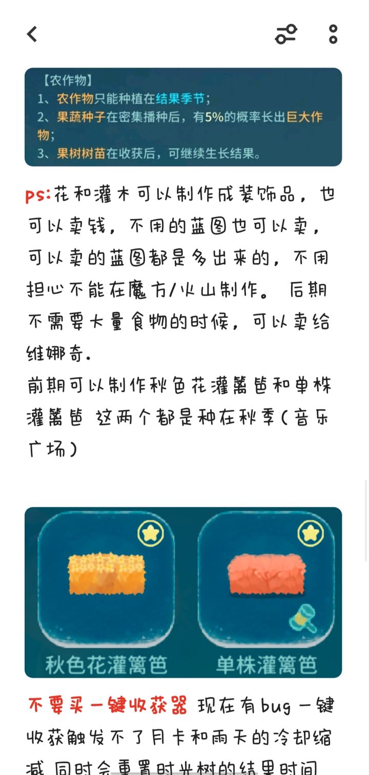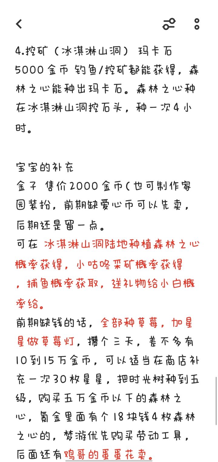 我踩过的坑就是经验玛卡石魔方升级要用,实在缺钱了前期卖掉,再买回来,让中间商赚差价!(我卖了,现在攒钱中打算买回来,我觉得是值得的。)种的所有花,树,果子可以统统卖掉换成钱。5-29补充编辑,尽早开蛋糕山的地图,把水果跟跟波利卡换成冻冻再卖,5个水果=10个冻冻,一个冻冻=60币,对比一下价格,换了卖更赚(就是废手)这样应该就可以不用借钱了。借钱也行,今天是我入坑第三天,还没还呢。后期应
