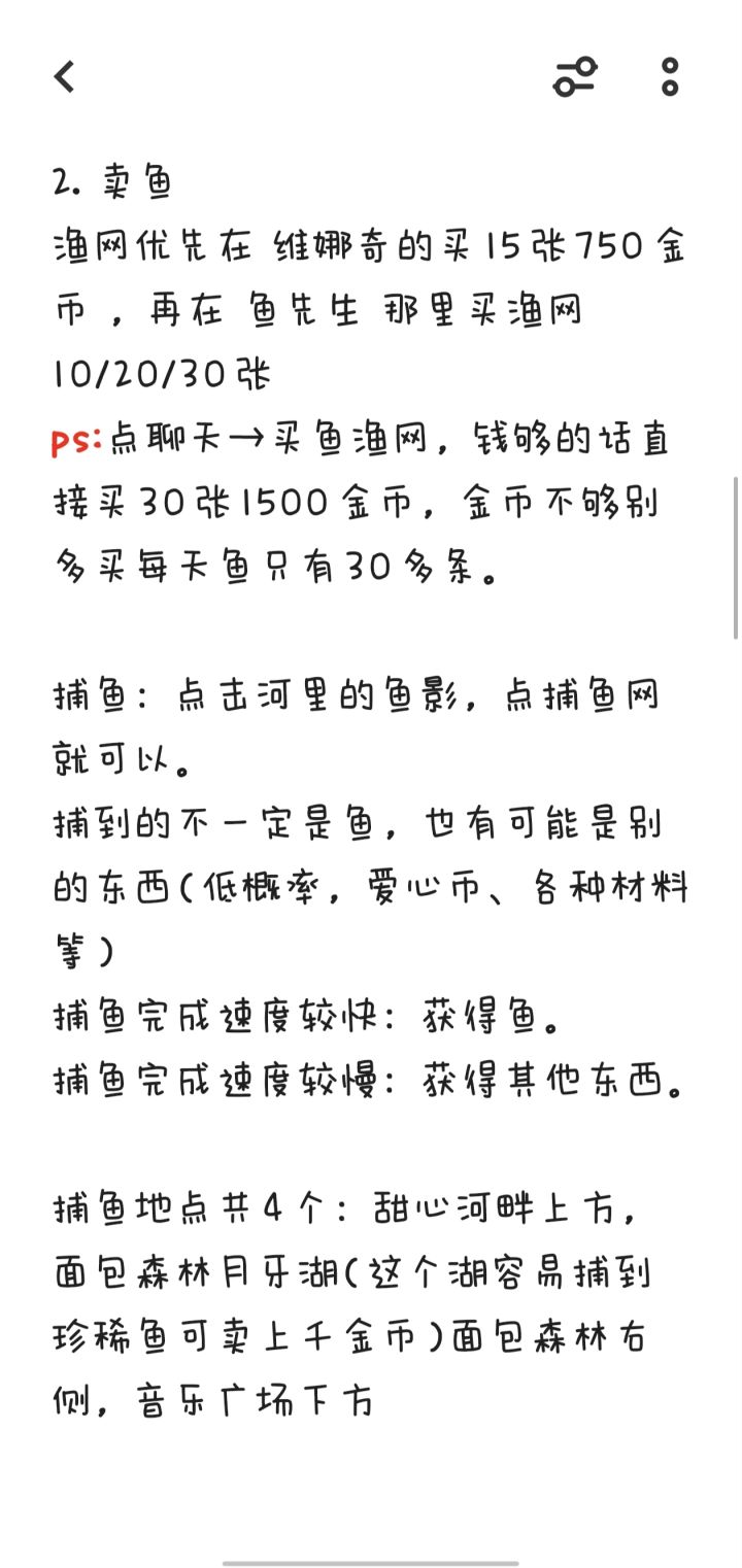 ps:卖鱼,玛卡石,水果这三个是每天都有的收入 其他方法是在金币不够花的情况下再去使用。这些都是我自己整理出来的,目前就想到这些,可能有个别不太准确,宝宝们如果知道别的跟我说一下叭,努力赚钱给小咕咚买东西呀!!