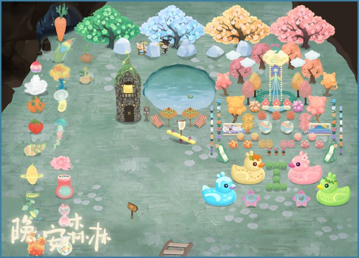 1.雨衣(下雨天干活必需品)2.爱好(小咕咚的各种喜好)3.飞行道具(小咕咚卡位必备,而且有趣味)4.潜水泡泡5.各种干活金工具人手一个玩具放的越多,体力消耗的越快多做几个桌子放在甜心河畔,放上食物小咕咚自己会吃