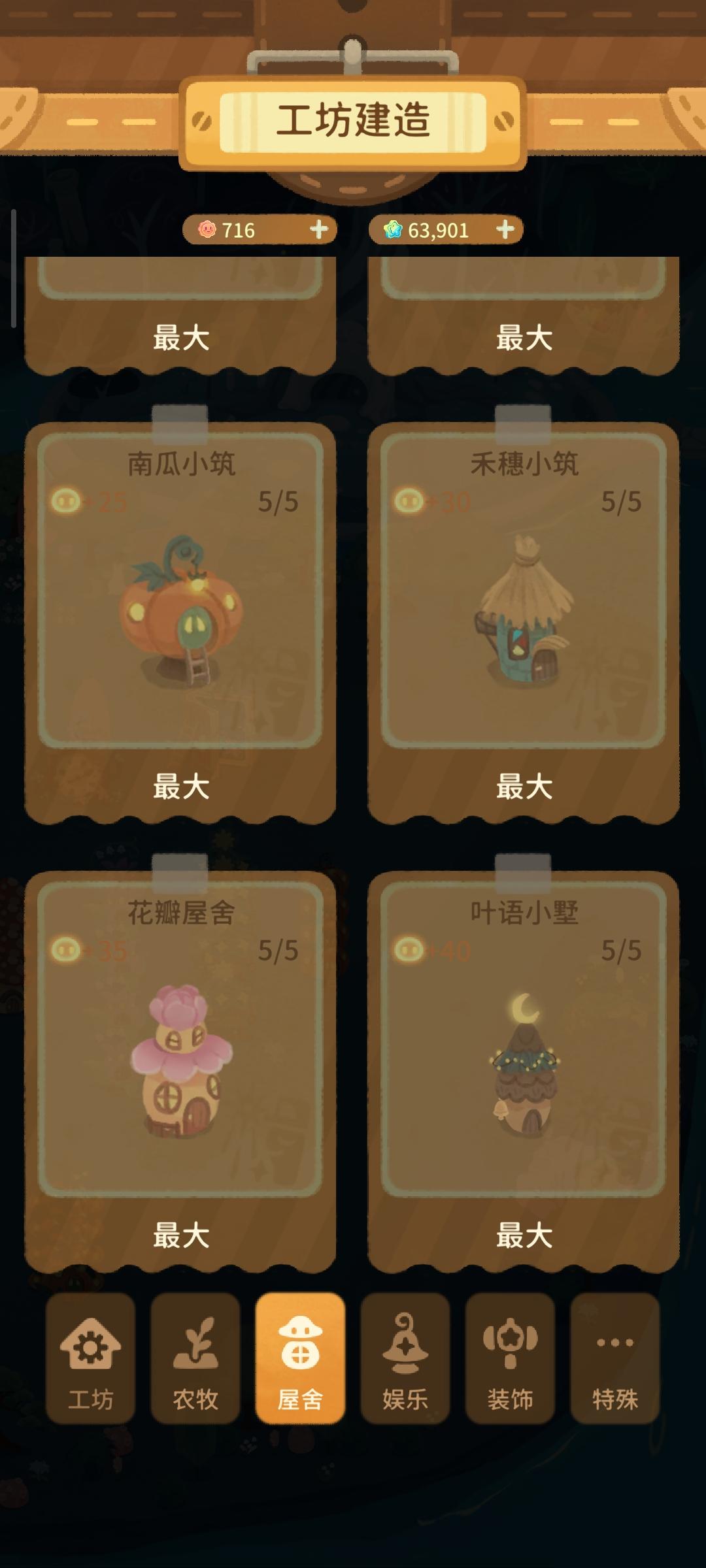 我娱乐设施都建完了→没法加精灵上限了→没法建屋舍→加不了精灵→扩建不了地