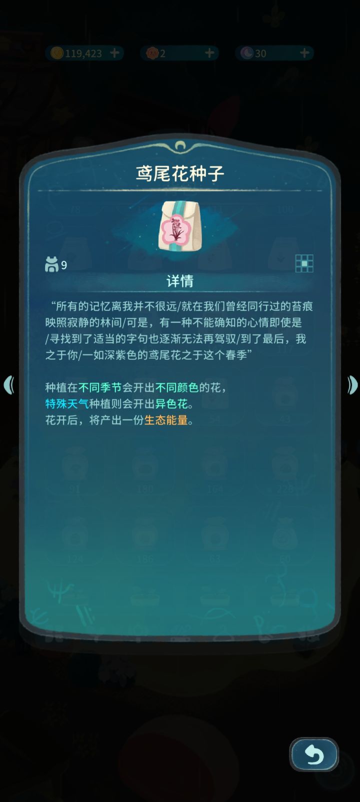 你们都有多少颗鸢尾花种子和雪松树苗