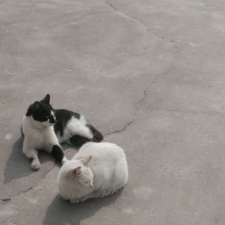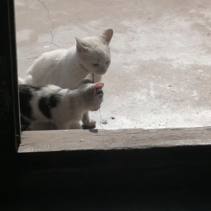 之前去乡下聚集在家门口的小猫给它们偷偷吃了点肉