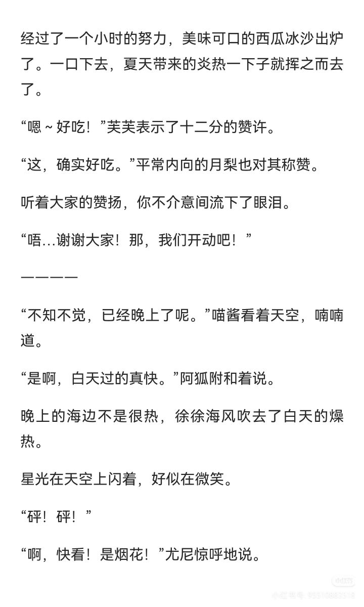 夜晚我走在那片花海之上,静静的听着海浪拍打崖壁的声音;萤火与我相伴,一同数着天上闪闪发光的星星。人们说,星星是思念交汇而成的;只要把自己的念想送的星星上,所思念的那个人就一定能看得见。或许,此时此刻,TA也说不定在看着这片星空呢?夜渐渐深了,森林也进入梦乡之中了;晚安,我的朋友。有想见的人,就早点去见吧!不要让遗憾伴其一生。#晚安森林 #晚安森林同人