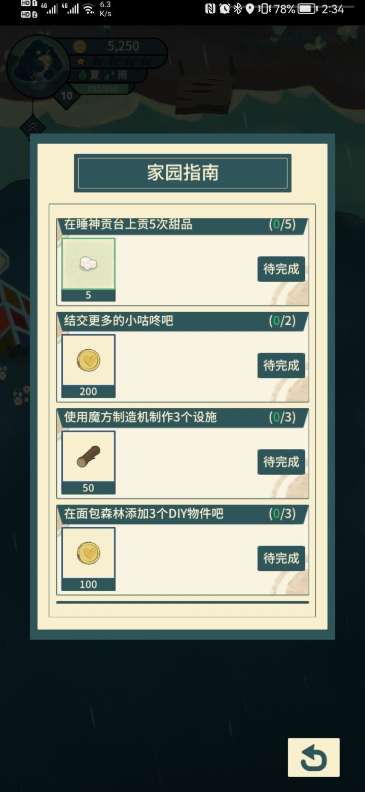 睡神供台上供5次甜品X使用魔方制造机制造3个设施X还有一个甜心河种植森林之心X