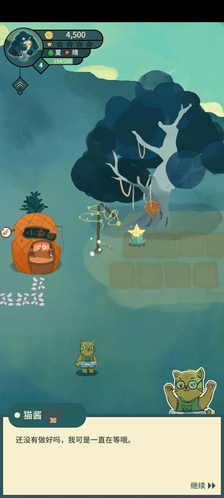 这里的喵酱,给它做小桌的时候,有点问题。 桌子我已经做好了,摆出来了。点击“锵锵,我做好啦”,没有用,它自动默认没做好。怎么办???如下图: