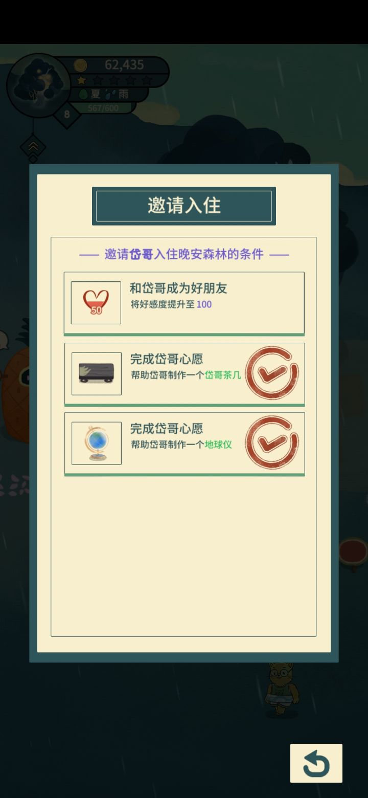 为什么?!每次我只完成了一个心愿,然后显示两个都完成了,吃的也给了也很满意是他们喜欢吃的,然后我的好感度永远停在50,这是bug嘛?