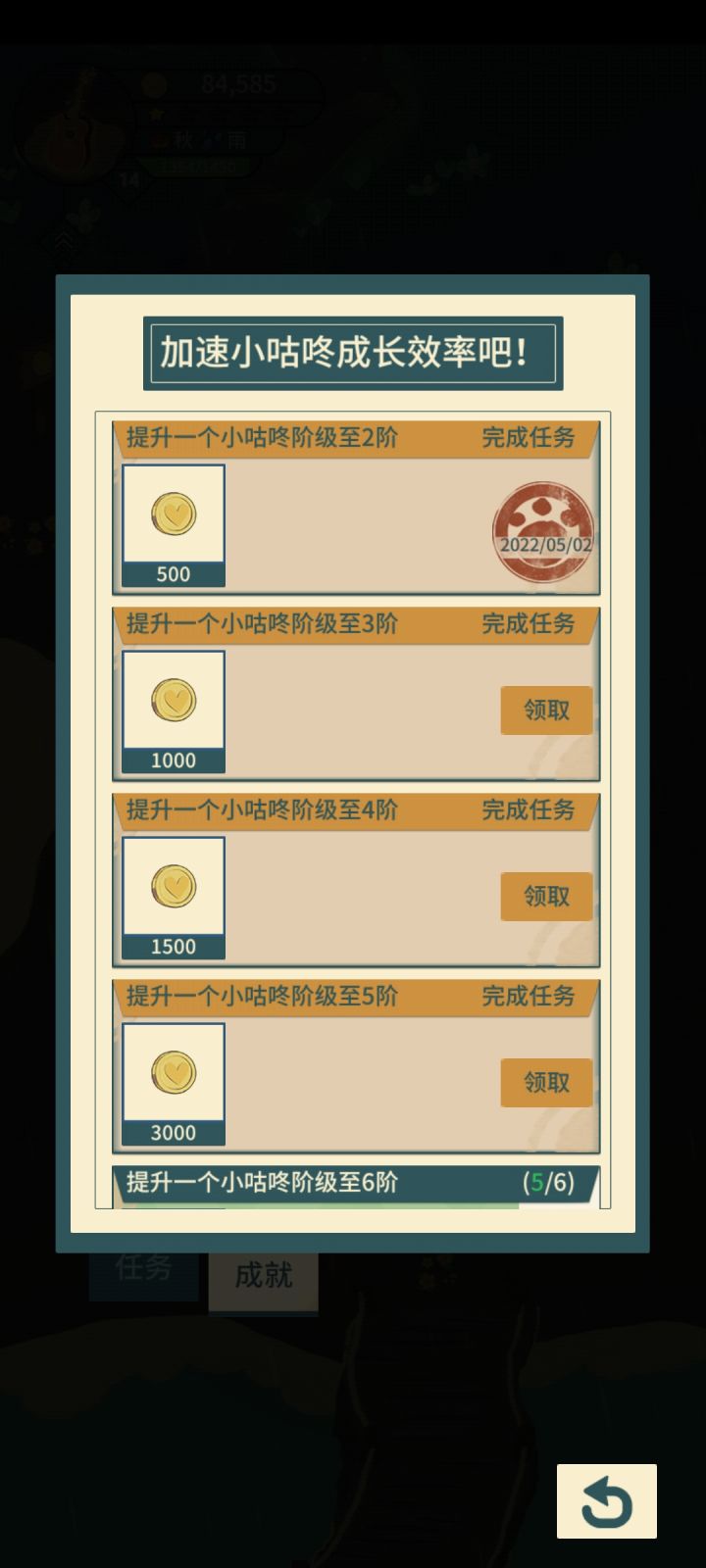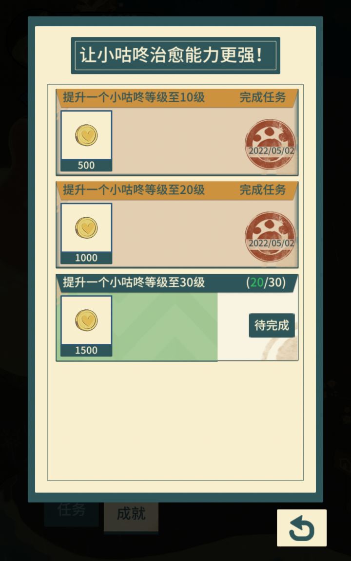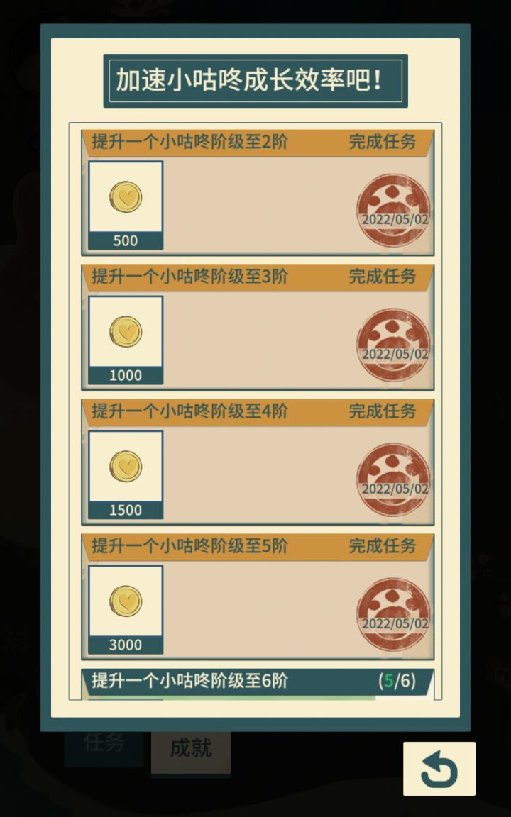 除了喵酱,其他的小咕咚来了,第二个愿望还没做呢就显示完成了,实际没完成,到点咕咚就走了。😭
