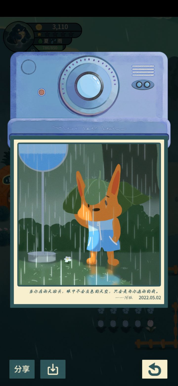 昨晚到现在还是进不去,突然已经不急了,晚安森林是我这两年玩过最让人觉得舒服的放置游戏,自由度很高可玩性也很高,空岛工作室人员少,只有一个半程序员,能把游戏做到目前我们玩到的样子我觉得已经很牛了。测试就是为了找bug不断改进的,也不希望看到工作室的小伙伴自责,洛文和小白熬了那么久没合眼,累了就休息会吧,毕竟晚安森林也是让大家休息放松的一个游戏。要注意身体噢,毕竟身体才是梦想的本钱呀