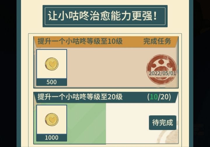 晚安💤成就栏的“提升一个小咕咚等级至10级”,目前还没有小咕咚符合条件,但成就达成了。(或者有没有可能判定条件是累计的等级?不过好像也不是诶)