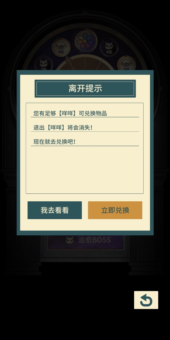 有咩咩可是不够已经换不了了 但是离开不了 两个选项是打开兑换页面的 不能返回了😿