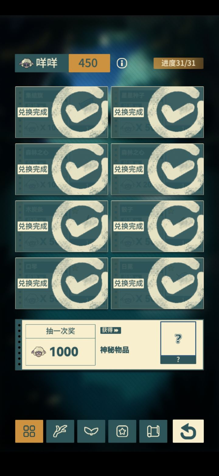 因为抽到了大礼包,已经把其他的全部都兑换了,那我现在每一次都抽不到1000,这450就全部浪费了,不能让兑换的物品增加,或者是说让留下咩咩吗