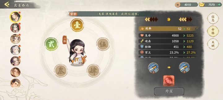1.名士满星为十星。2.名士不管是什么品级,升星需要的碎片数量是一样的。3.名士升星的第一个五星和第二个五星需要的碎片数量不同。4.目前第一个五星需要的碎片数量是:1星:20片2星:20片3星:60片4星:150片5星:150片#华夏绘世录 #华夏绘世录创作团 #发现好游戏 #游戏攻略