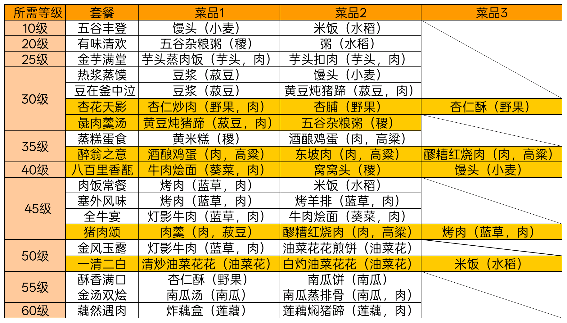 更新了50级~60级的食肆套餐另外,修正了精卫的礼物喜好