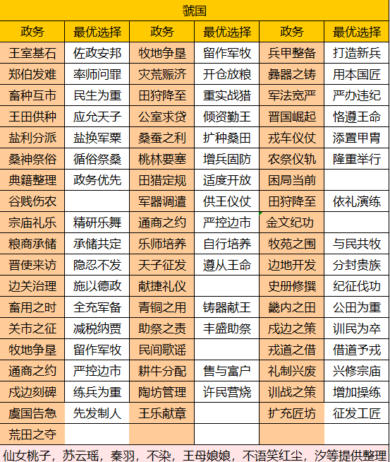 大家有不确定的,帖内没有的政务,都可以回帖。每个国家政务不同,此帖为燕国政务。如果你选燕国,就主要选加政治军事文化的选项。