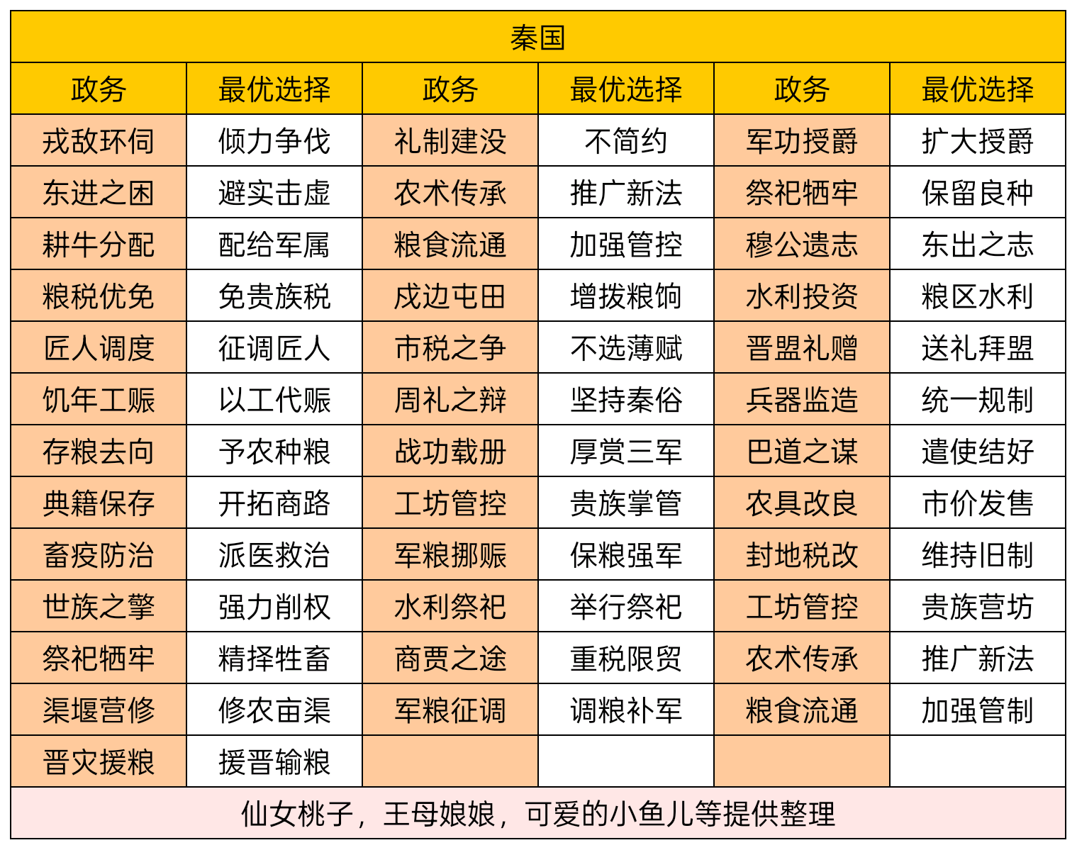 大家有不确定的,帖内没有的政务,都可以回帖。每个国家政务不同,此帖为秦国政务。