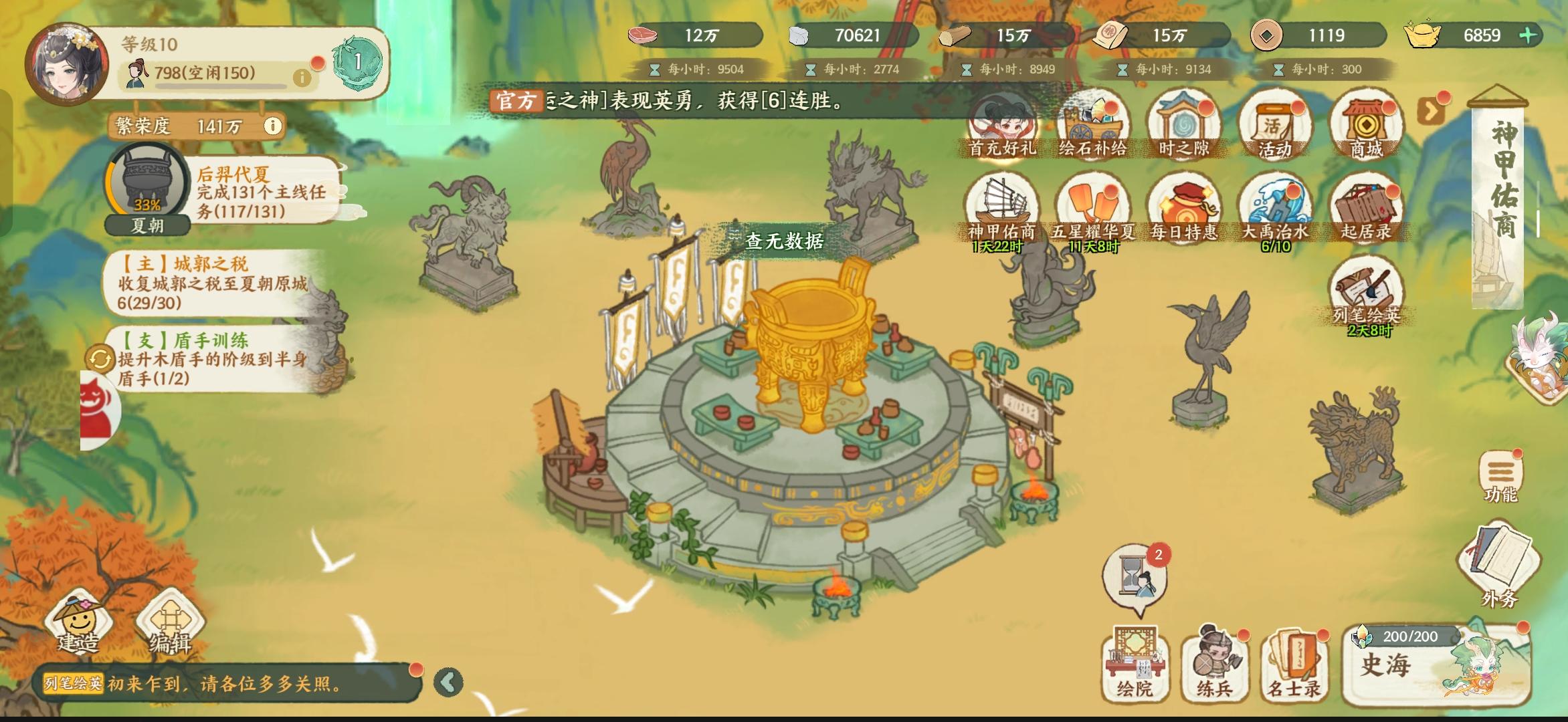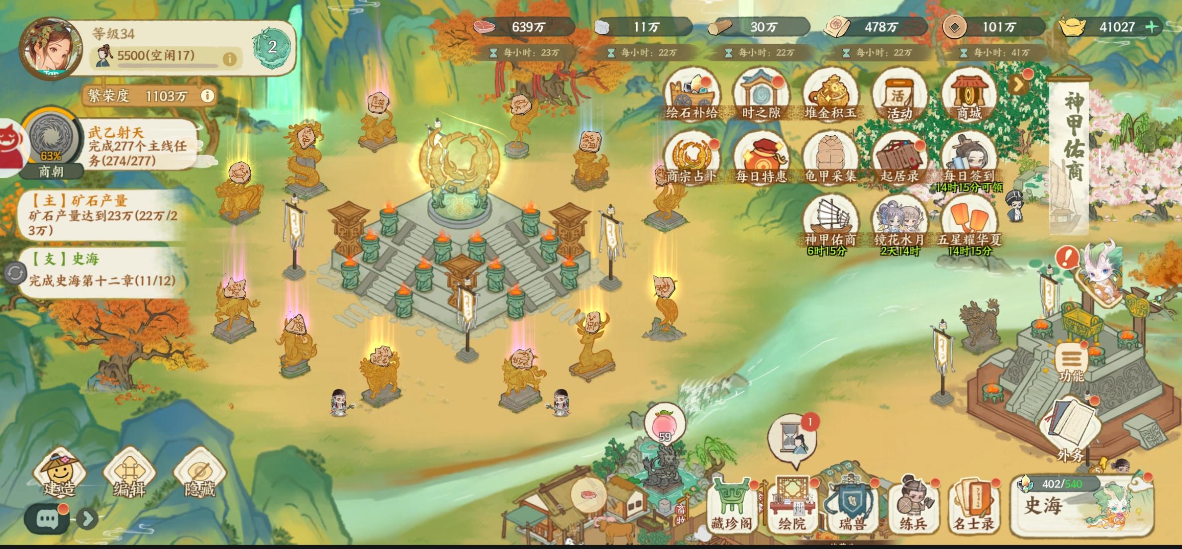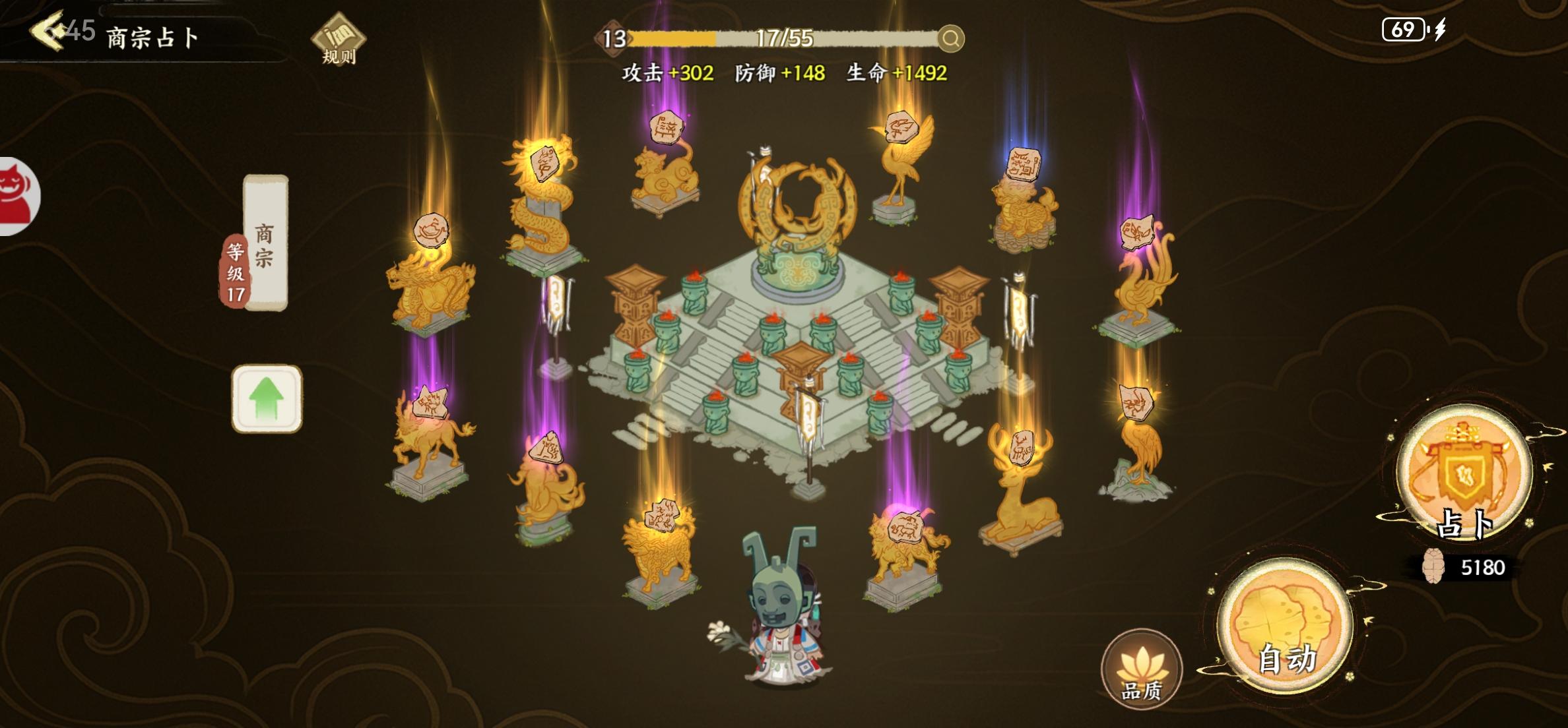 龟甲采集建议出个8小时占领完后自动占领,每天定时上三次太累了,还有占卜能不能来个五十倍占卜,五倍太慢了