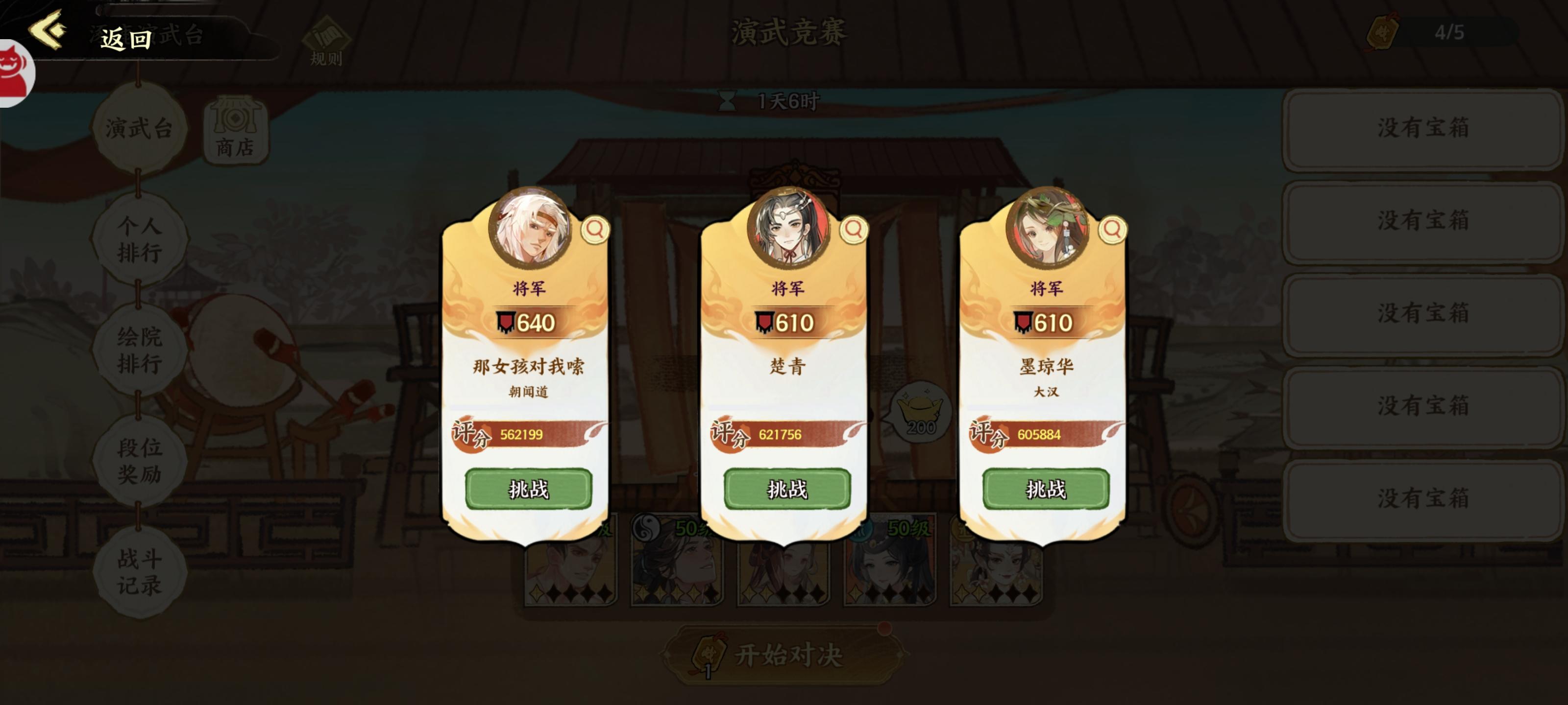 玩这么多游戏了第一次见到演武场不能刷新的。我必须得输一场才行