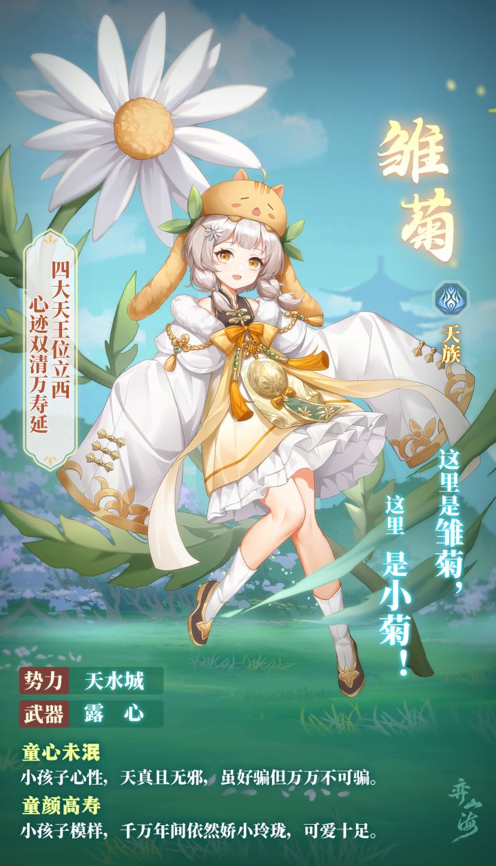 友友们好呀,打工狗小天来给大家带来本周的山海绘卷咯~是发着光的一位角色哦!天族「雏菊」,绘卷呈上!૮₍ ˶•ᴗ•˶₎ა今天因为有点点着急下班,更多的话小天攒几天再来说好了欸嘿~最后,祝友友们度过一个愉快的假期哦!