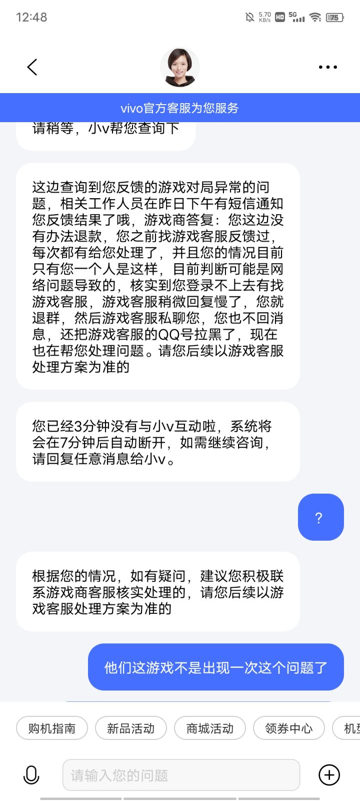 我这个游戏已经一个多月,三天两头不是碰到这个问题就是那个问题,bug太多,我网络超时进不去这个问题我反馈过很多次了,一直不解决,从开始到满怀期待到现在都麻木,我当个玩家应有的游戏体验不给我解决,还有我去求这你们,1.我们是消费者,我们玩游戏充值就是想得到更好的体验2.我想维护我自己作为消费者应有的权利3.如果你想把游戏往好的方向发展,先得学会爬在学会跑,体验都没有解决天天想着搞这个活动那个活动圈钱