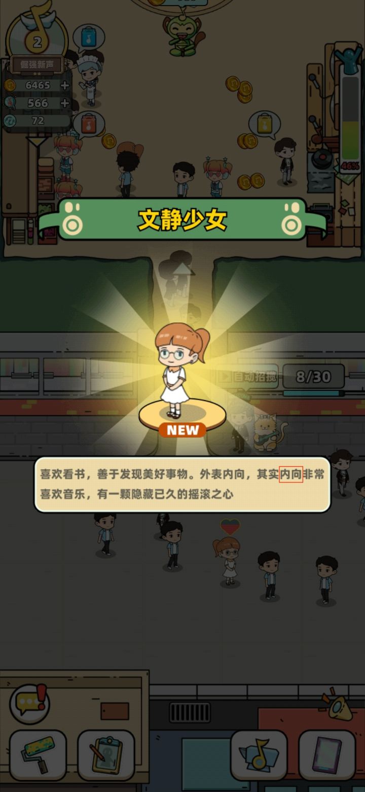 首先是道具吧,就开了餐吧之后任务也有解锁新菜谱,但是原材料要表演获得。舞池等级低,要表演只能慢慢攒球,一场都要等很久,更别说日任务的五场。开新菜谱的时候一个失误材料就没了,相当于我刚才攒的一波表演白费了。新曲子新乐器都要探寻得材料,但是探寻新角色之后因为材料不够,好感刷不完就只能卡在角色界面,不知道还有什么别的途径得到材料没有。然后就是广告,我个人是不太介意有广告的,模拟经营小游戏有广告支撑是很