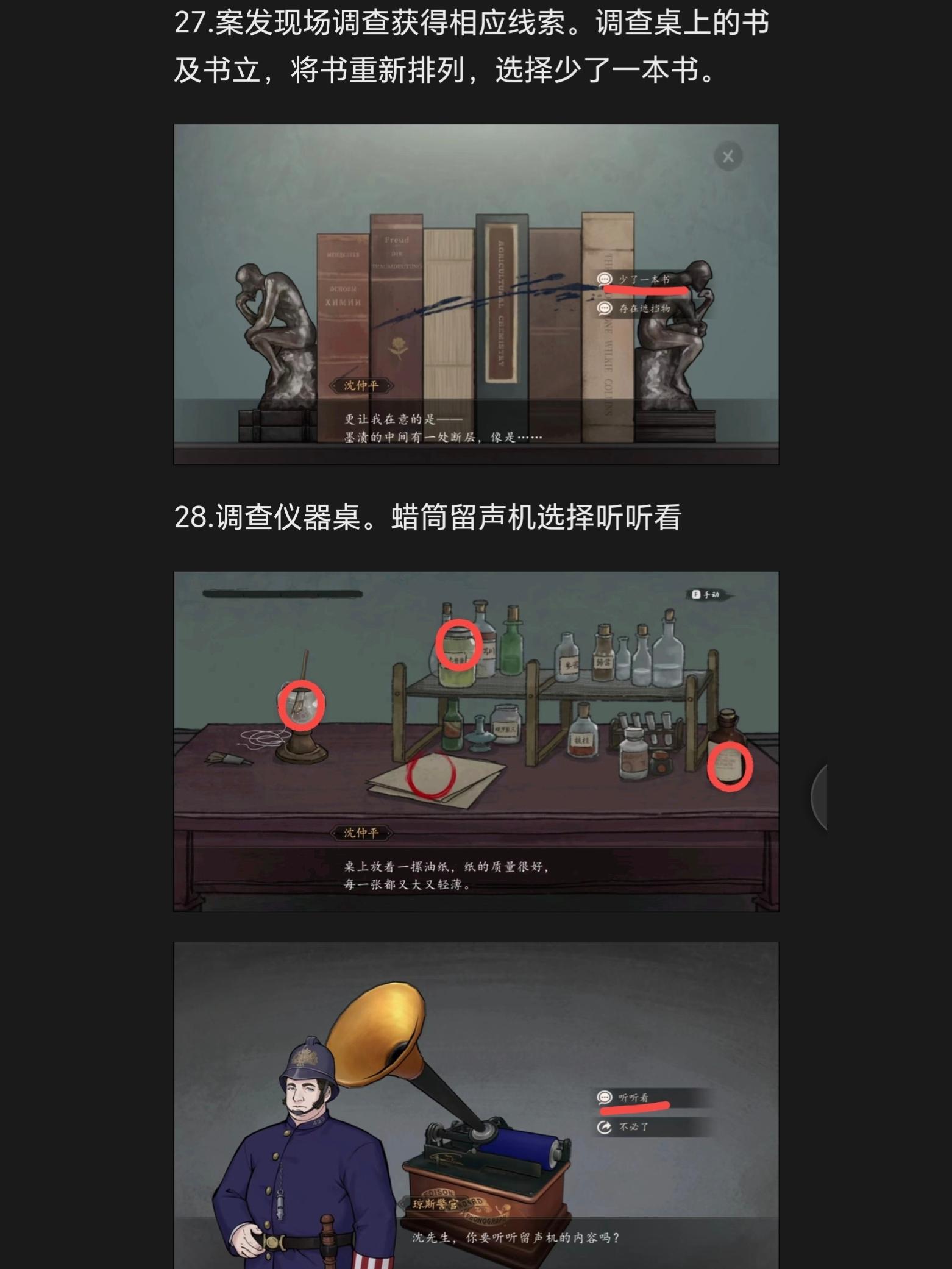 有幸上了游戏的感谢名单嘿嘿嘿本攻略包含了游戏的攻略、成就及结局收集,但仍有几点需要注意:1、为保证游戏性,无惩罚机制的推理不一定在攻略中。2、为防止剧透,凶手不在图片里,放在本文后面。3、本攻略非保姆级攻略,只列举了有惩罚机制的情况下的答案。4、全成就及结局收集非常繁琐。图上红圈表示会触发成就的节点,绿色表示会触发结局的节点。非成就党可忽略。5、本攻略适用手机端及ste