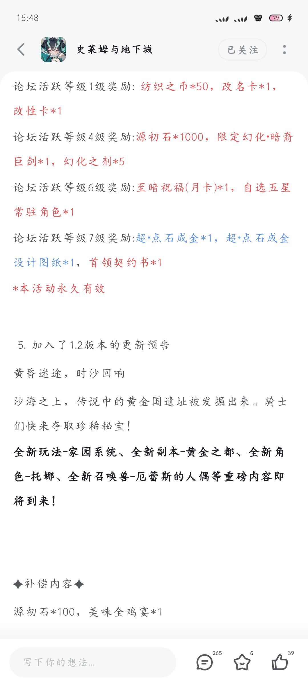 主页互赞互评论,如何快速提升等级。一 发帖,发帖得经验。最大上限大概为5贴二 回复与被回复。二者都可以得到相应的经验。被回复的经验要高,预计上限为十条回复三 点赞与被点赞。同理,被点赞经验更高,上限待测四 加精。直接经验30啊!但是对人的理论水平和游戏了解程度有一定要求。五 举报。举报上限为3,经验应该大于或等于5。只有举报成功(即得到管理员回复认可)才有经验。