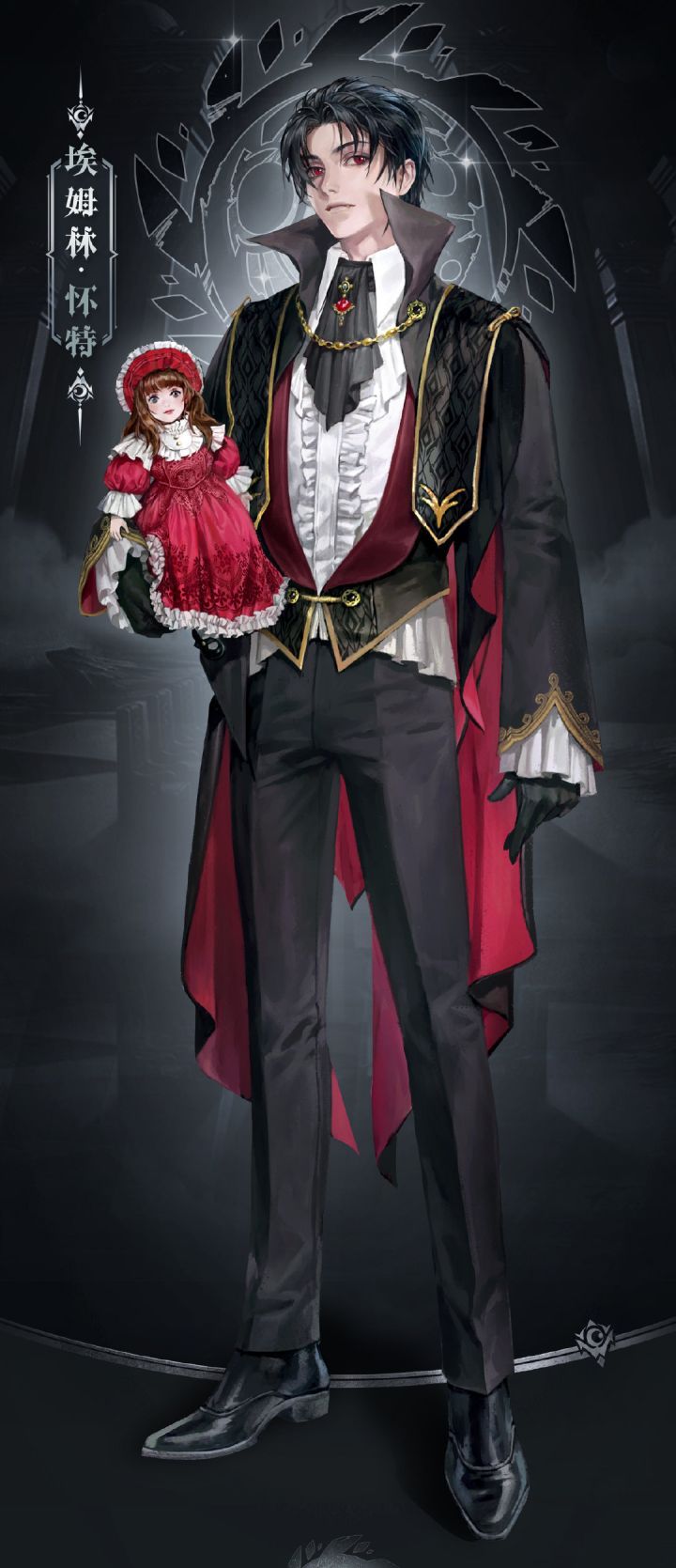 角色名:该隐属性:暗外貌特征:白色长发红瞳的年轻贵族男性背景设定:被神降下诅咒居无定所的流浪贵族,对待敌人阴郁冷酷,对待熟悉的异性喜欢调戏她们但从不会让人反感。拥有掌控血液的能力和令人绝望的强大实力,相信我你绝不会想把他当做对手。终极技能:消耗当前生命的90%主战者13秒内每次攻击额外攻击一次,持续时间结束造成消耗生命2000%的暗属性伤害(数值可调整),并且回复持续时间内造成伤害的5%