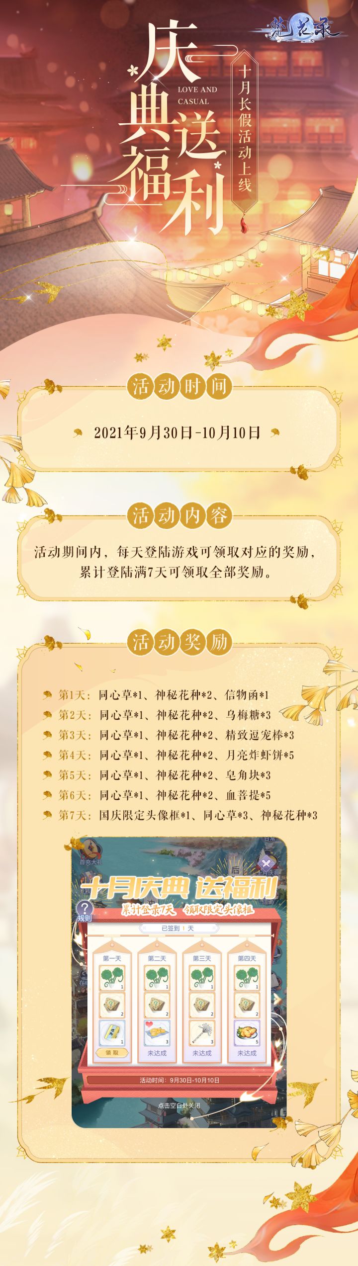 梵花录十月长假活动上线