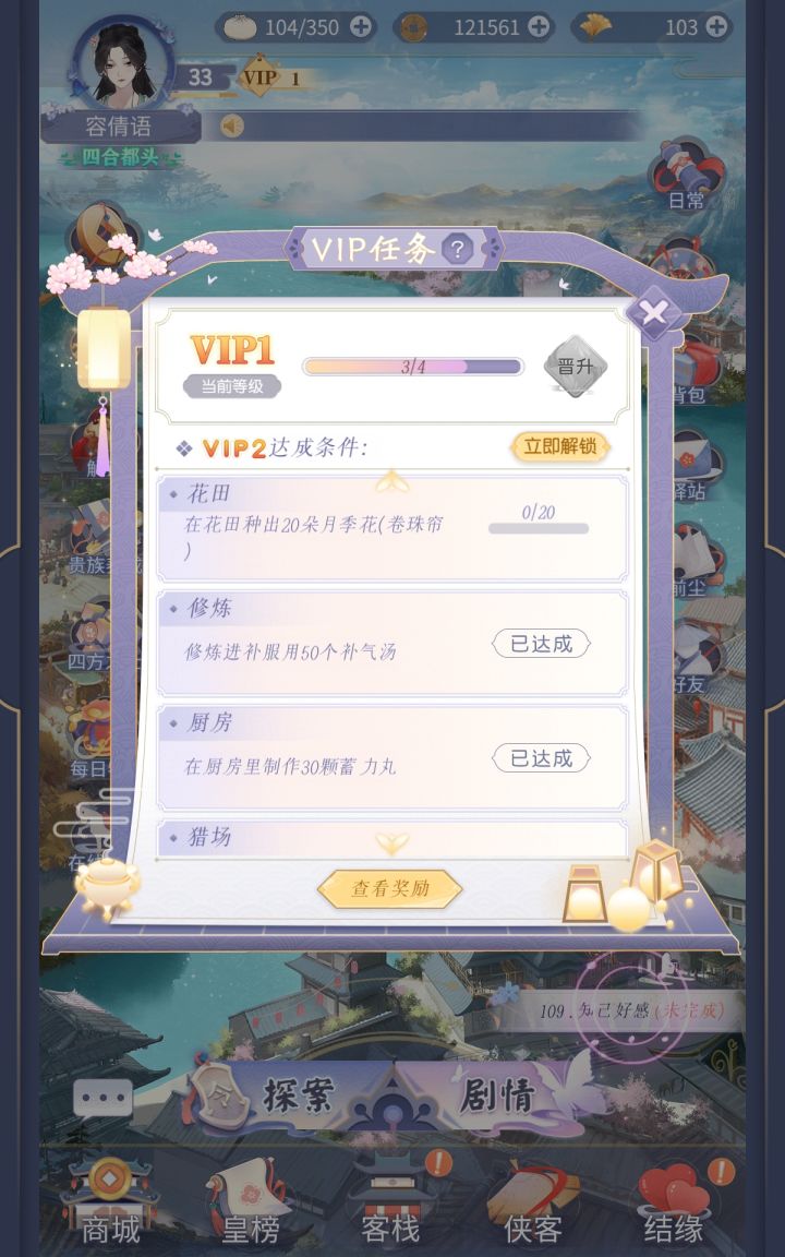今天再一次遇见谢半仙,升了v'1后,赶紧去做了升v2的任务,想问问各位大佬,种月季获得卷珠帘的几率大嘛,我还有一百多个月季种子,之前一直在种神秘花种