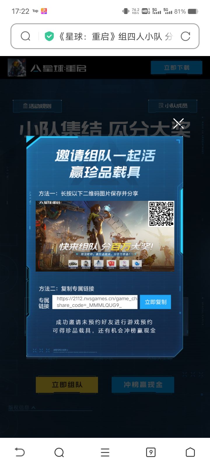 我在《星球:重启》等你,请前往https://act.nvsgames.cn/gms/5faf6b8155?token=MMM5WX6C加入我的拓荒小队,输入拓荒口令:MMM5WX6C,即刻领取指挥官赠礼、更有千元京东卡大奖等你拿!