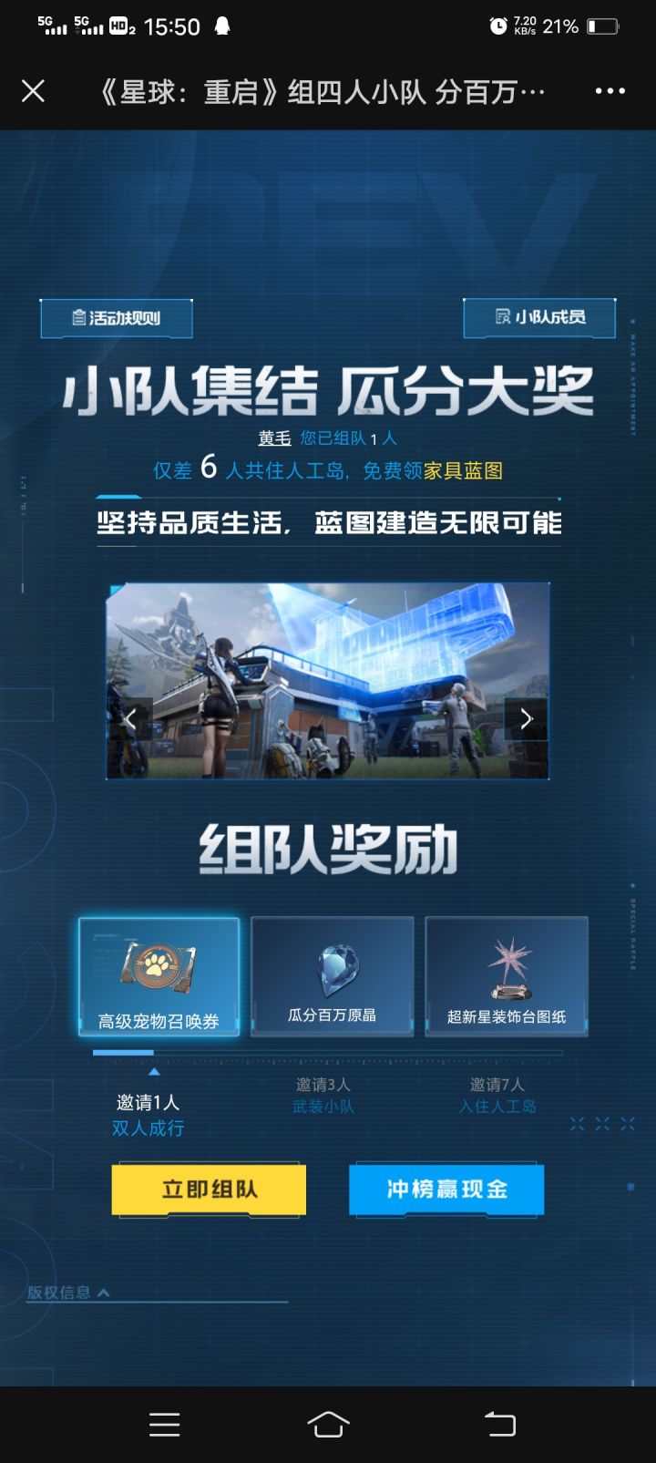 星球重启公测报名啦,有一起组队住人工岛的嘛