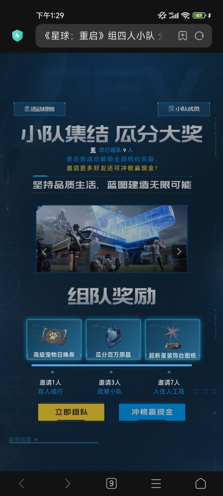 组队领奖励了