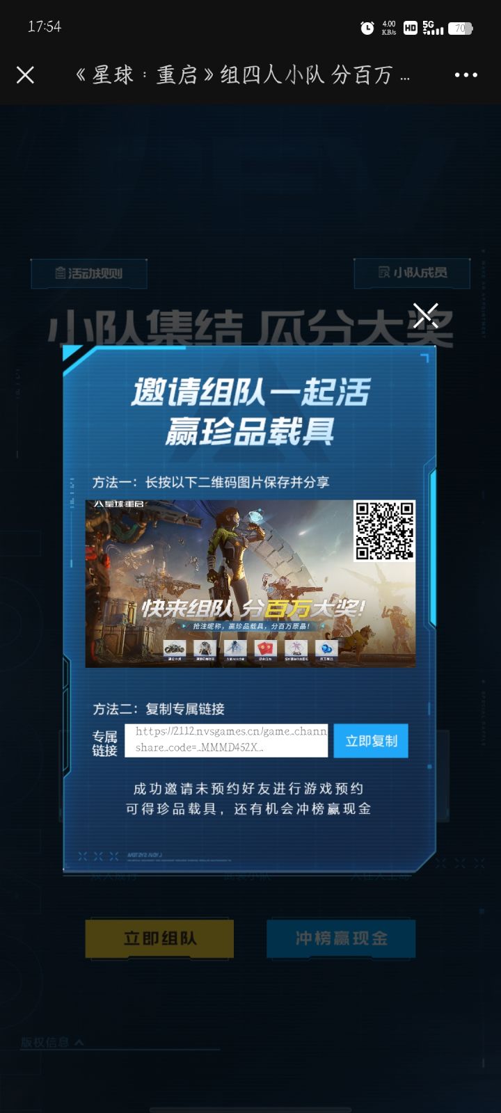预约组队瓜分奖品