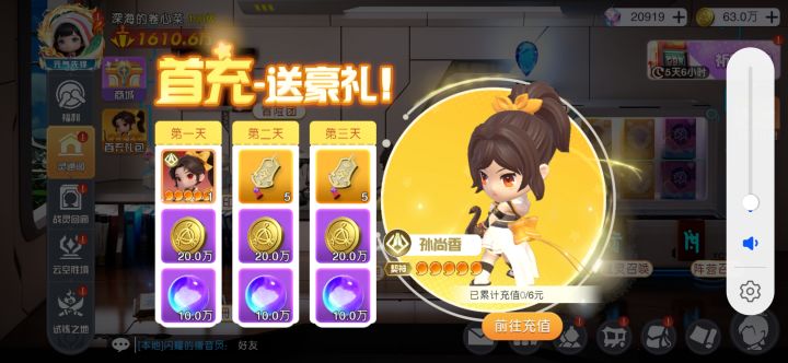 第一天:开局可以白嫖一百五十抽共出三红,第三个红将必定神魔。黑山开局最优,次之吕布。 兑换码:yq666,yq888,yq999,yqxhs666 琉璃珠存着 第八天:会出巧玩活动抽满360抽可以获得一个50自选橙巧玩碎片。花谷令牌存着第15天:会出现一个仙子抽取活动也是3天360抽满送一个橙仙子。下个95活动练境:前期一定扫荡全部点完,这个如没有大佬还能偷个榜3。限时活动换神魔5星
