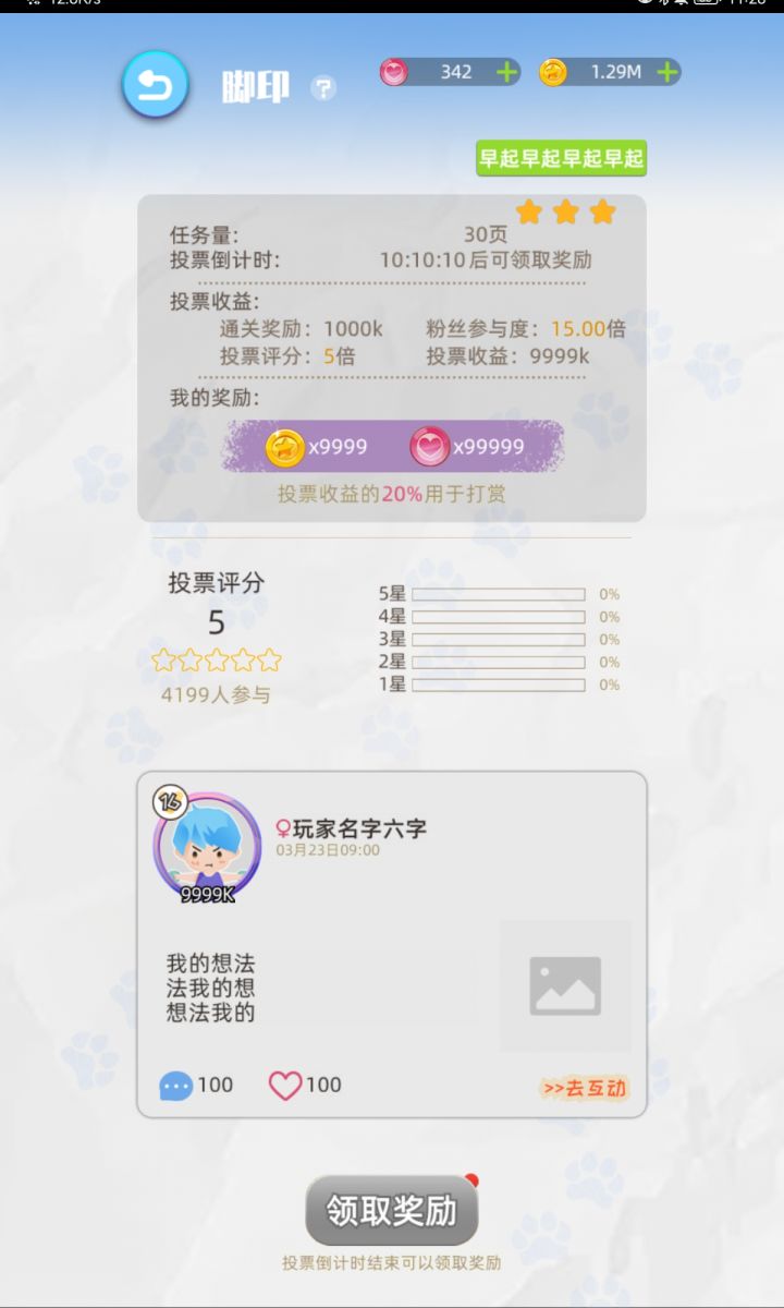 发布早睡会出现“非法”写着“脚印已放飞”实际上并没有,再点一次还是会回到投票预览。退出游戏后从主页面看这个任务会出现图三。时间:11月25日晚11点27分左右机型:华为MatePad网络:wifi 5G(希望官方能够及时处理(๑•̀ㅁ•́ฅ✧)
