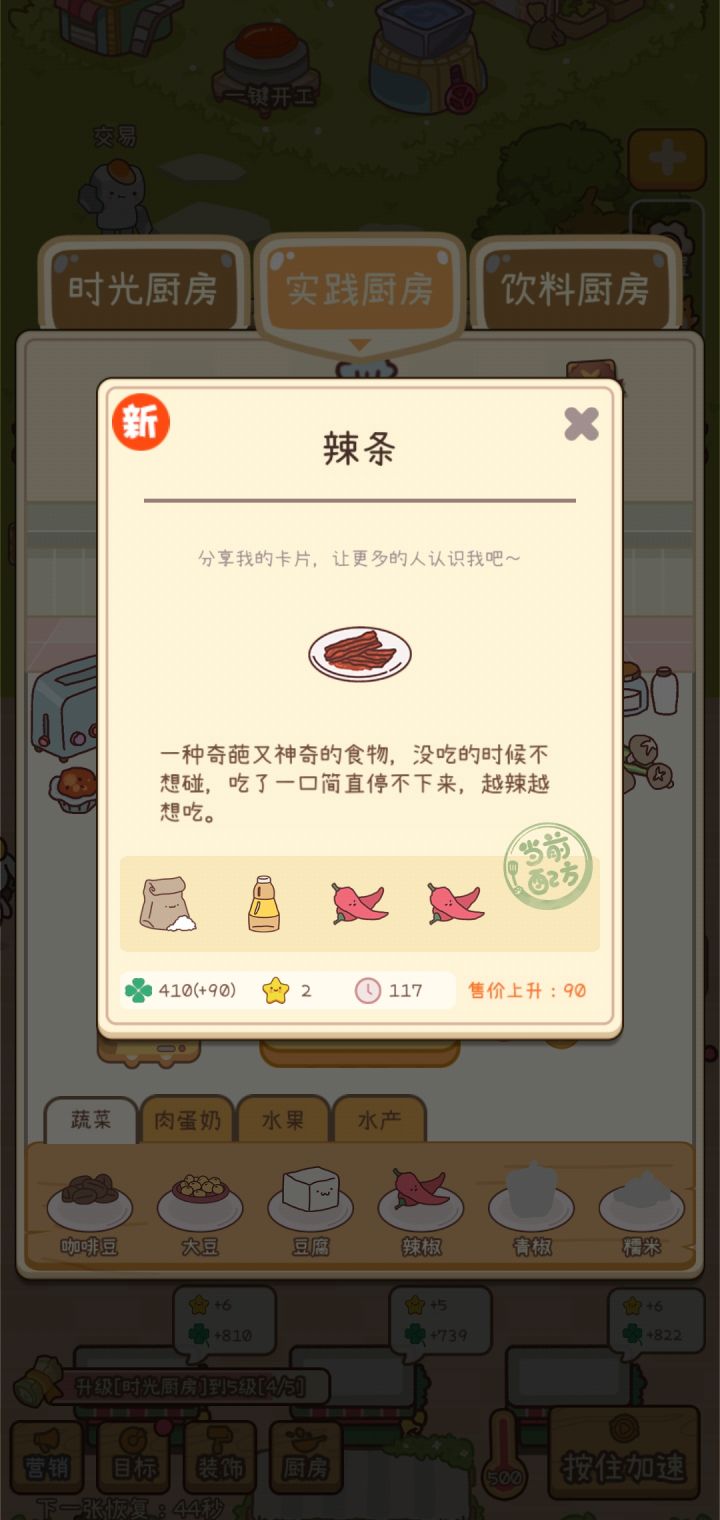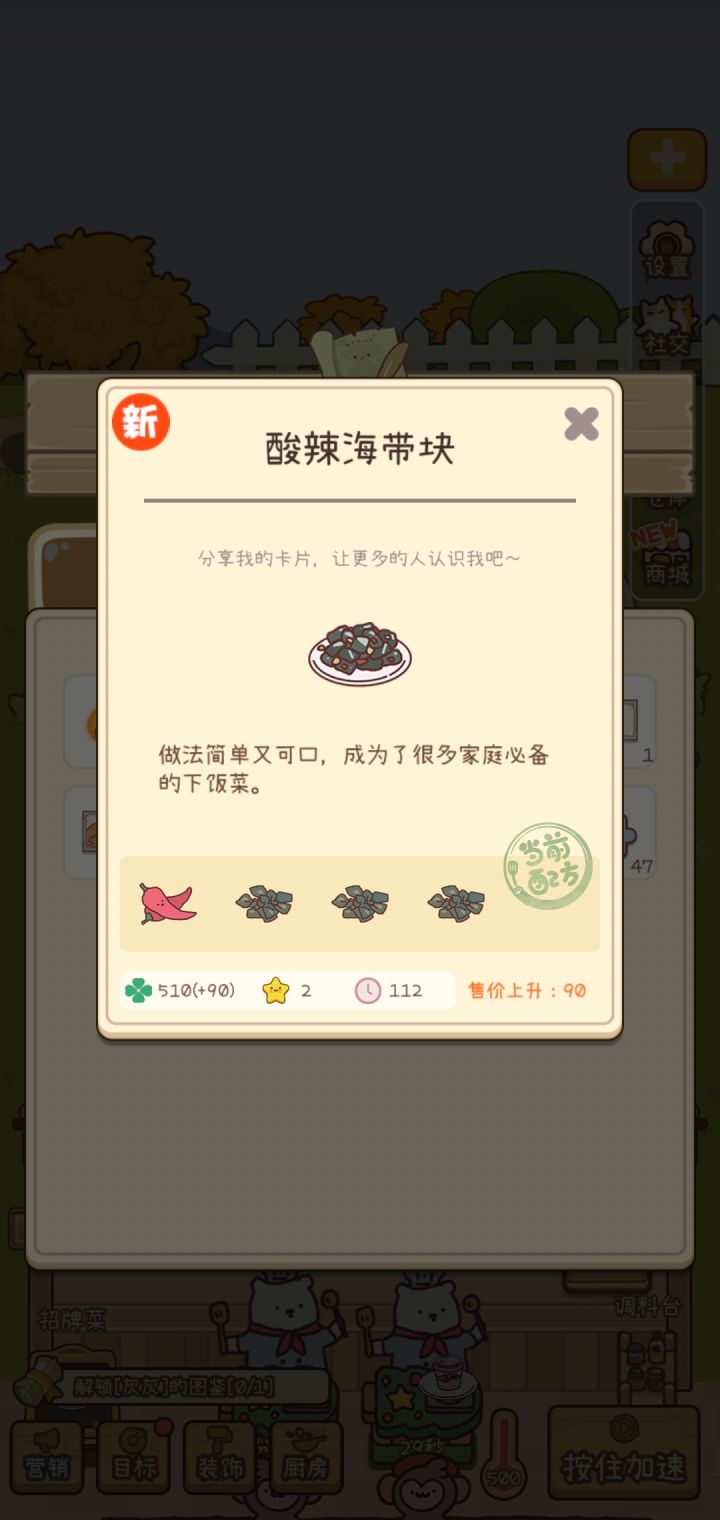 谢谢各位大佬的食谱 ,整合一下 ,存个档 ,还有很多不完整的,待整理----------------------------①鱿鱼丝【全】1.鱿鱼2.鱿鱼 芥末3.鱿鱼 蜂蜜4.鱿鱼 黄油 黑胡椒 蜂蜜5.鱿鱼 黄油6.鱿鱼 黑胡椒 黑胡椒7.鱿鱼 鱿鱼 辣椒 辣椒8.姜 姜 鱿鱼 琼浆 辣椒②猫耳朵【全】1.面粉 面粉2.蘑菇 黄豆 面粉3.蘑菇 鸡蛋 面粉 葱4.