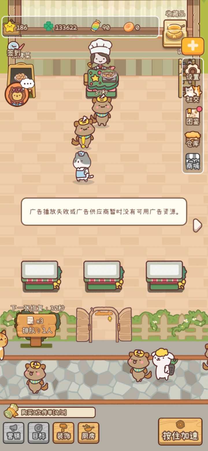 看完广告回来之后出现了这种情况 菜谱的等待时间我觉得有点过于长了