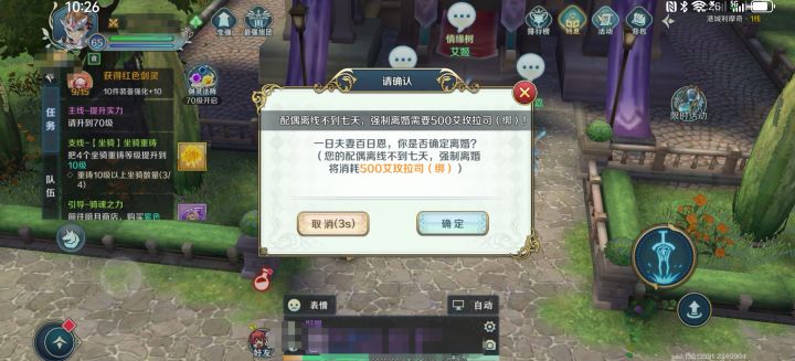 游戏官方能不能说一下!!!!!!!我们这个区现在等级上限65级,我的号结婚的对方58级的时候就退游了,你们游戏显示强制离得对方不在线7天,对方退游都快超过两周了,还显示不能,非要让我花这500钻!!!?搞什么!!!?#伊苏6纳比斯汀的方舟