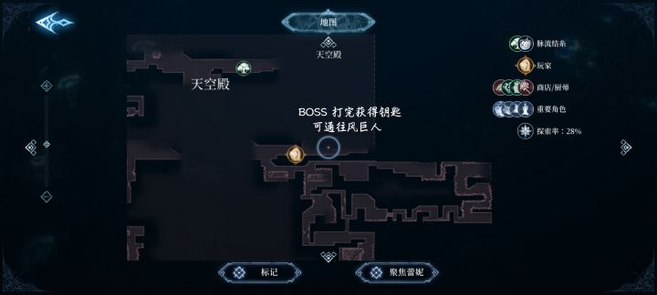 18.天空殿同样跟主线的联系不是很大了 但是这里的风巨人是需要我们进入她的灵魂里解救一下 这也是幕后黑手做的针对风巨人的局 我们在完成猫头鹰任务 请求 之后才会学得灵魂入侵 进入风巨人的灵魂 救完之后呢会获得一个源语符文 风,世界树的谐律